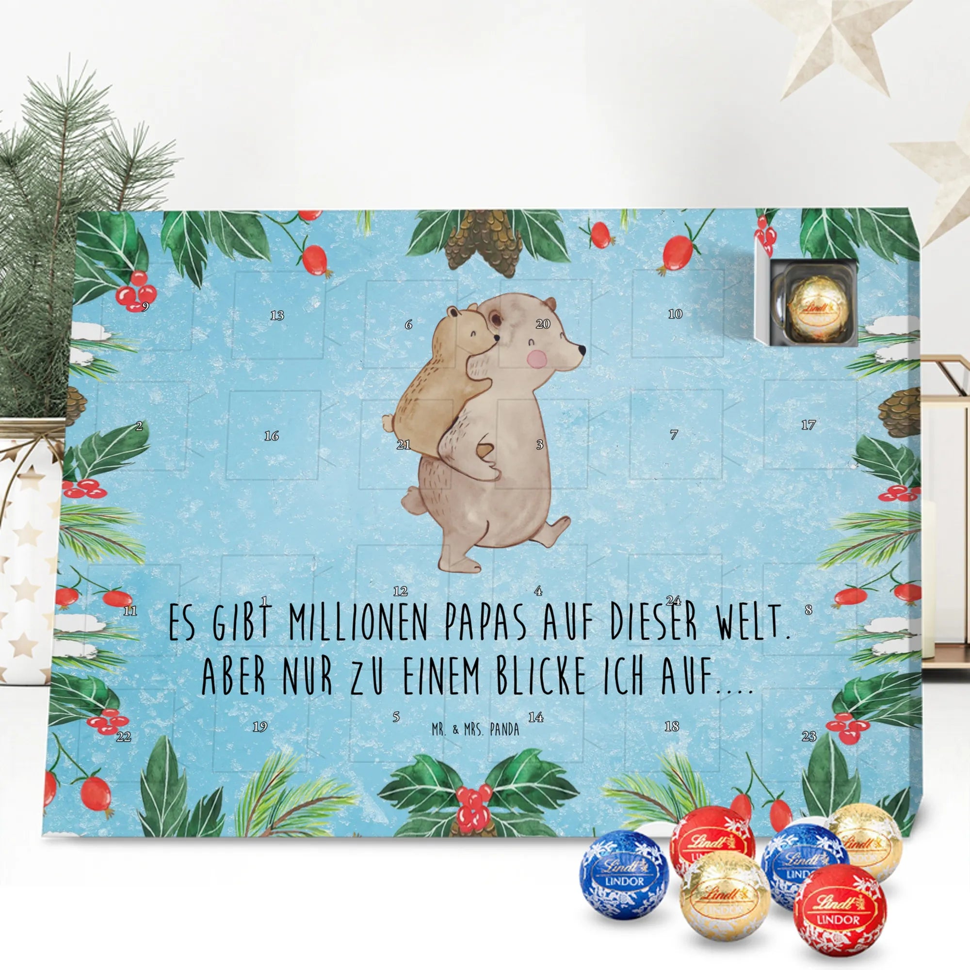 Chocolate advent calendar Papa Bear - Lindt LINDOR - with saying - Ice Blue