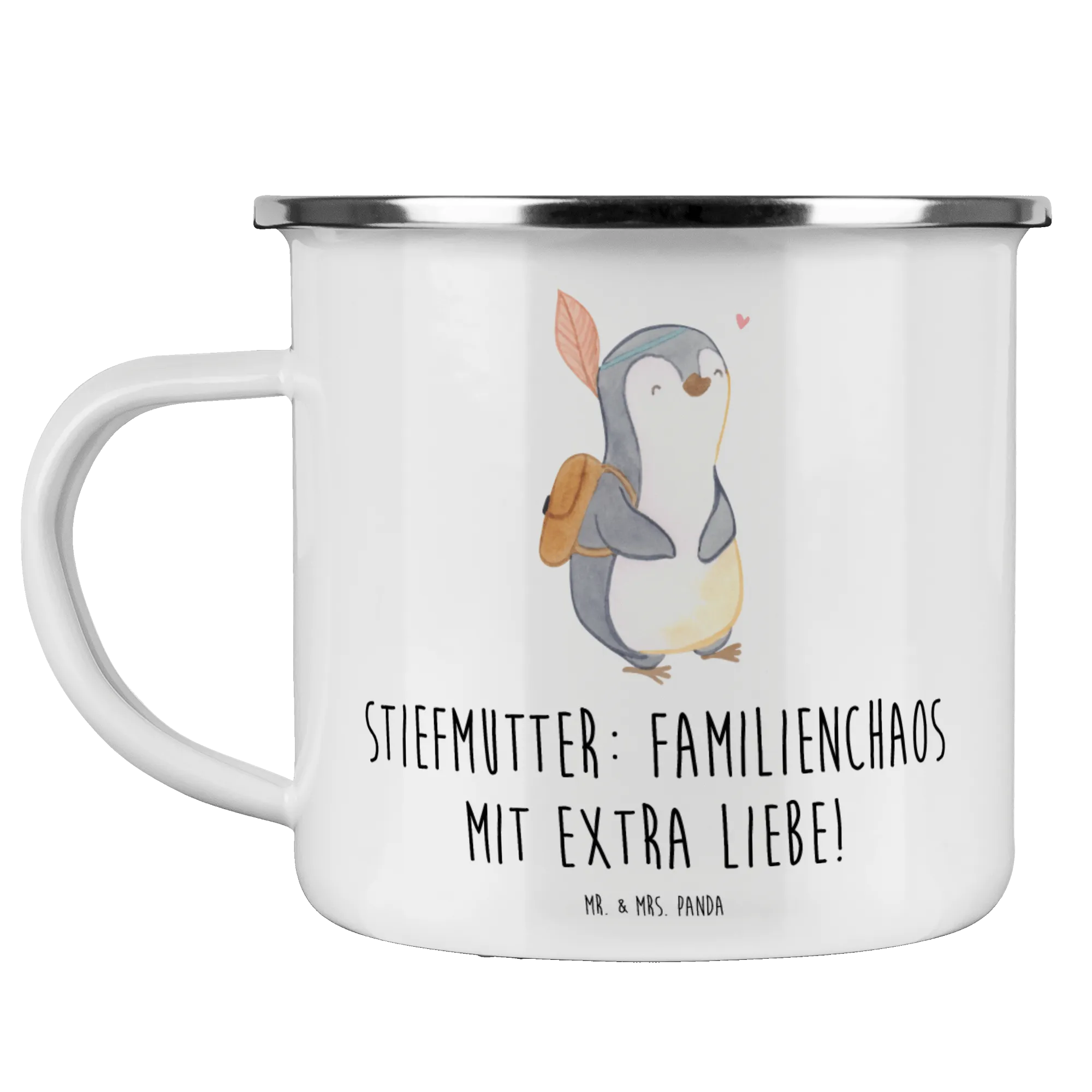 Enamel camping mug Stiefmutter: Familienchaos mit extra Liebe! - White