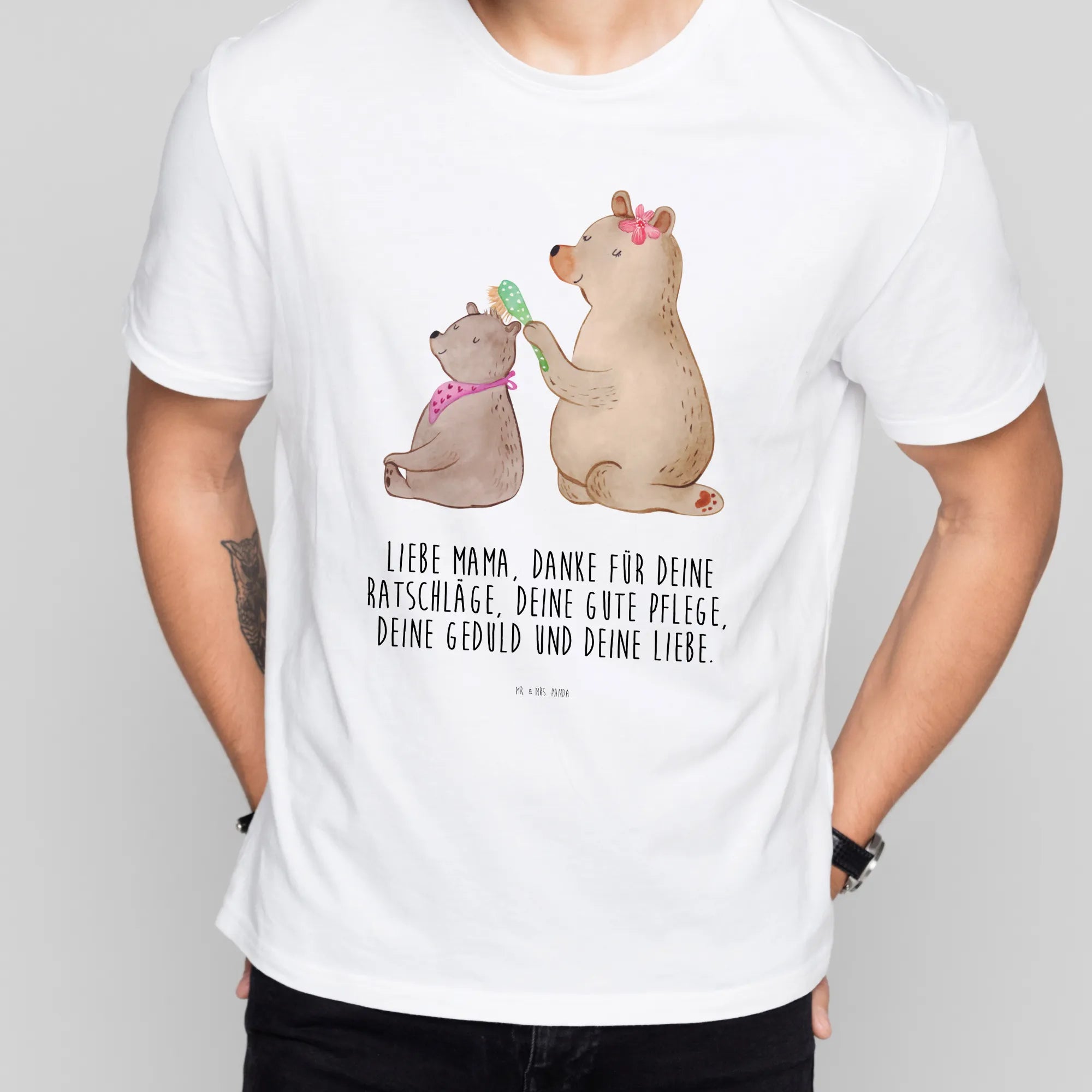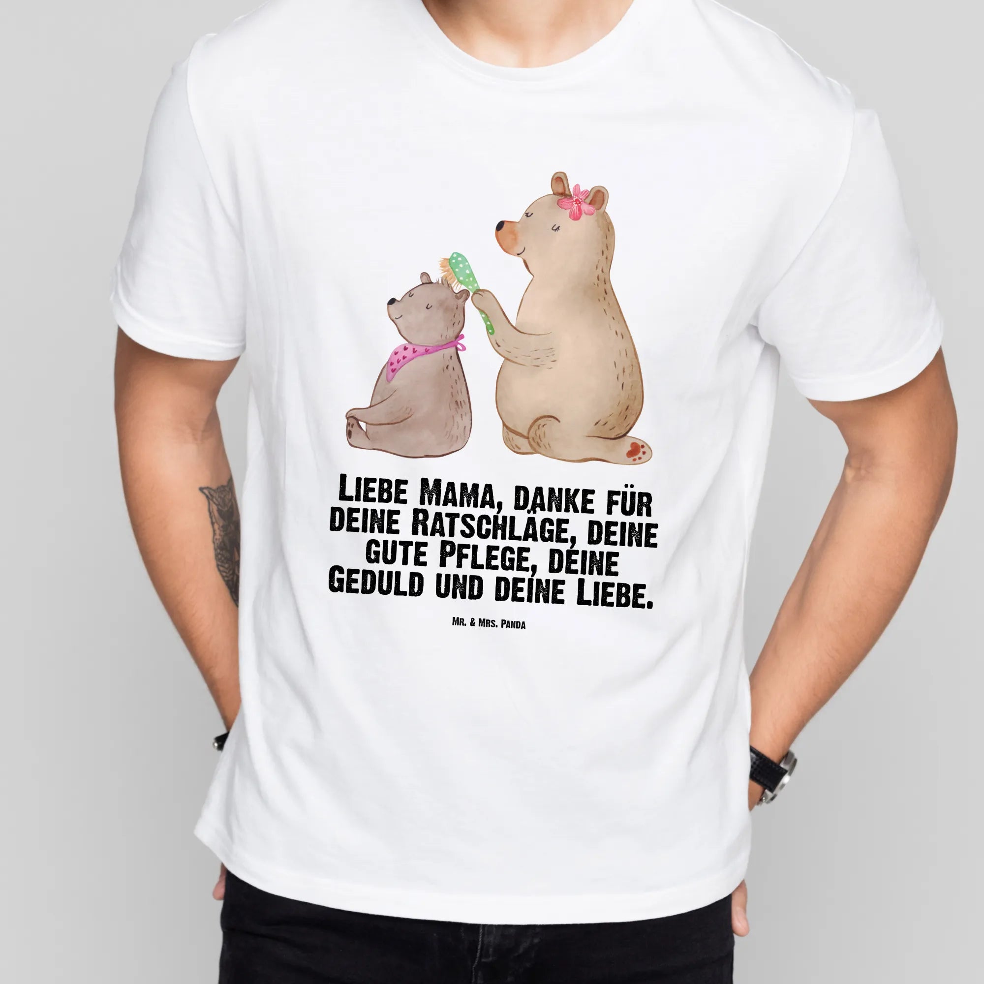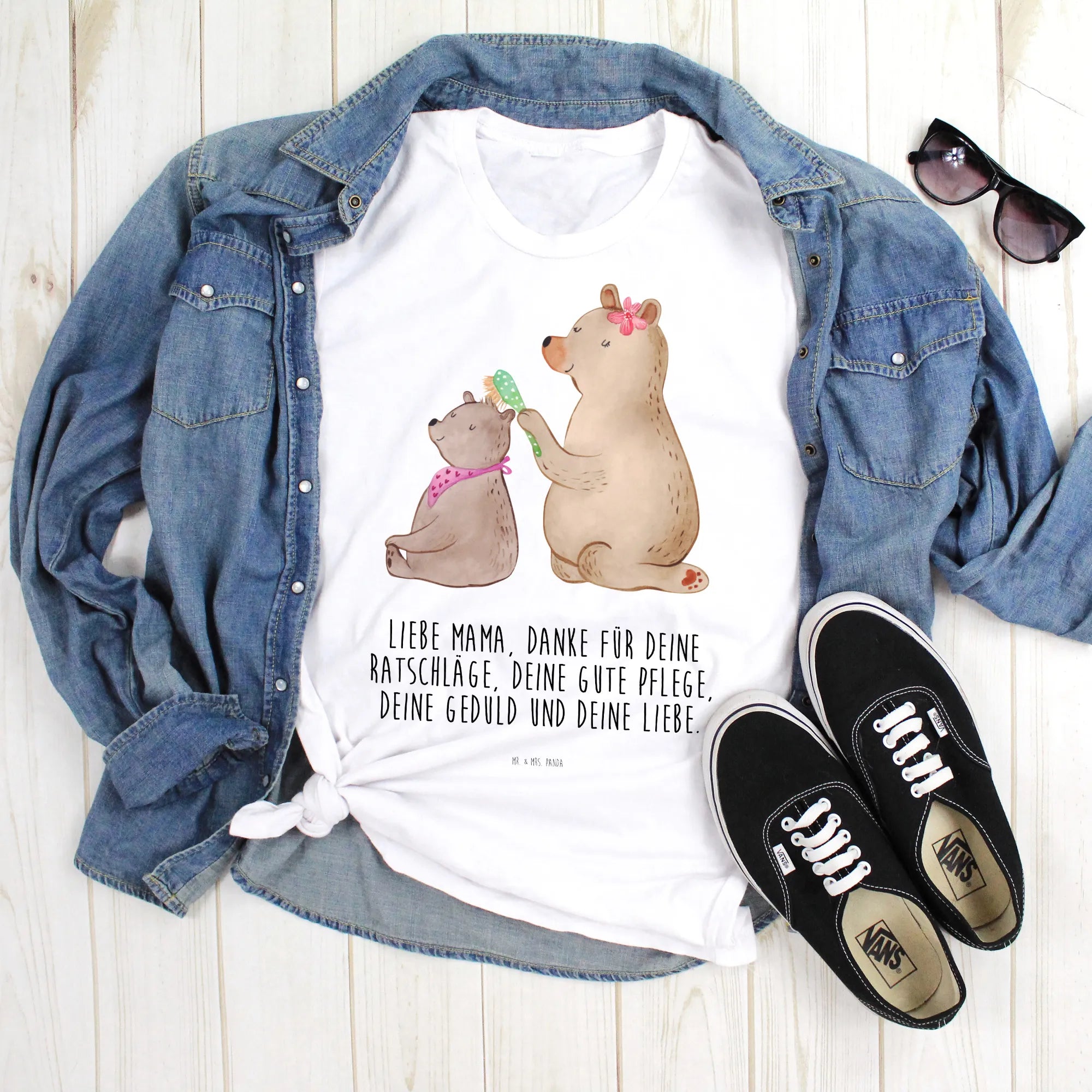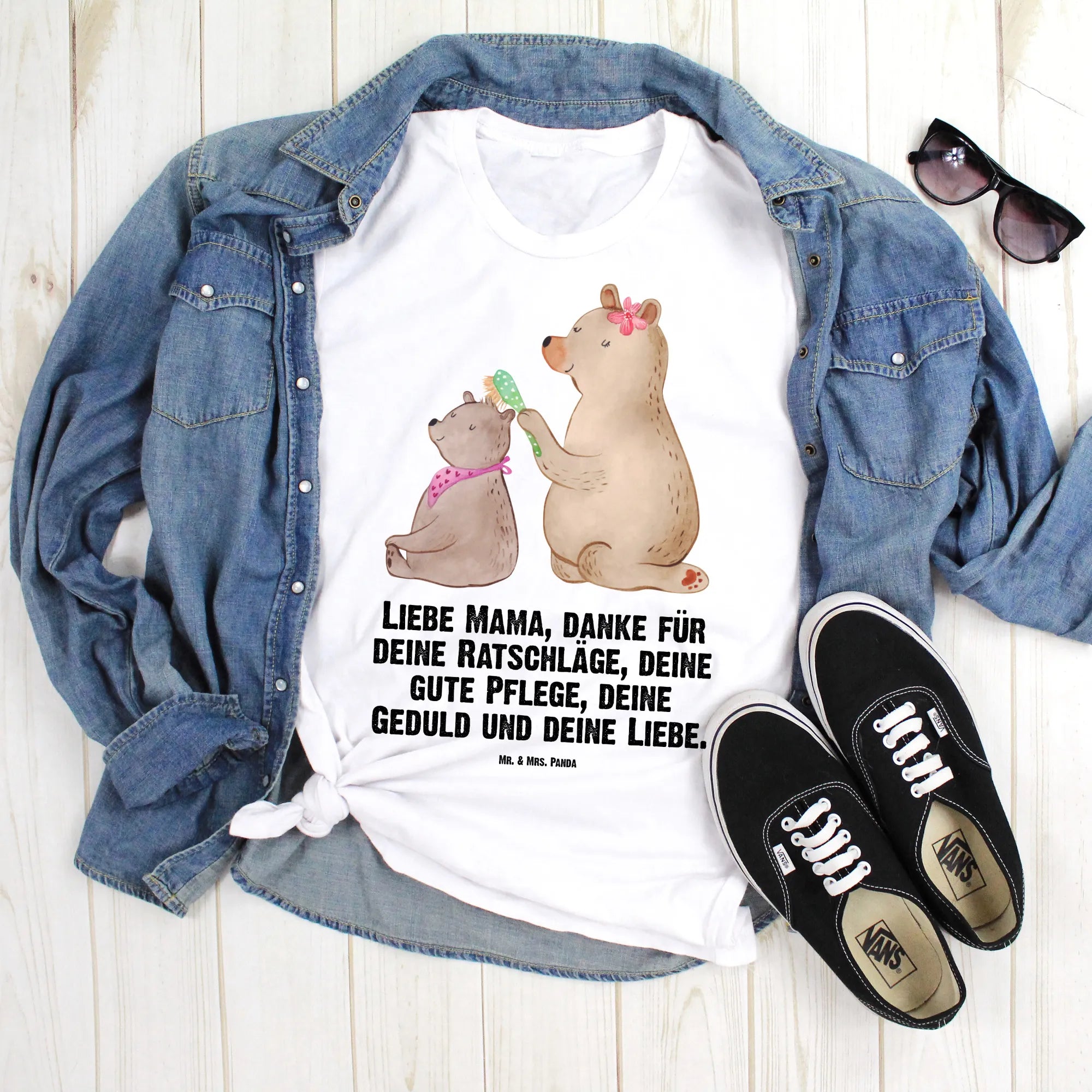 Ein Geschenk, das von Herzen kommt: Dieses Mr. & Mrs. Panda Damen T-Shirt Größe L trägt das zarte Motiv „Bär mit Kind“ aus unserer Familien-Kollektion. Ein großer, fürsorglicher Bär mit blumengeschmückter Haarspange kämmt liebevoll das Fell eines kleineren Bären – ein Bild voller Wärme und Geborgenheit. Ergänzt wird das Motiv durch den herzlichen Spruch: „Liebe Mama, danke für deine Ratschläge, deine gute Pflege, deine Geduld und deine Liebe.“
