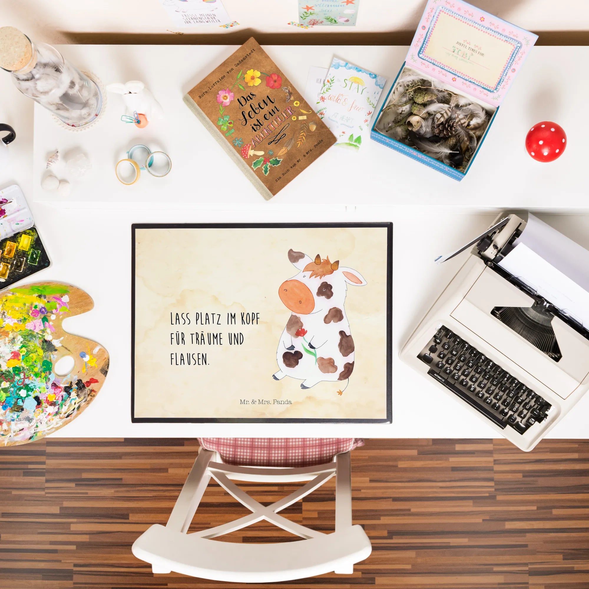 Each desk pad is crafted from high-quality, durable rubber, proudly made in Germany, ensuring that it protects your desk while offering a smooth surface for writing. The fun and quirky design features an adorable cow holding a sunflower, reminding you to leave space in your head for dreams and nonsense. This is more than just a desk pad; it’s a motivational piece that inspires creativity and joy!