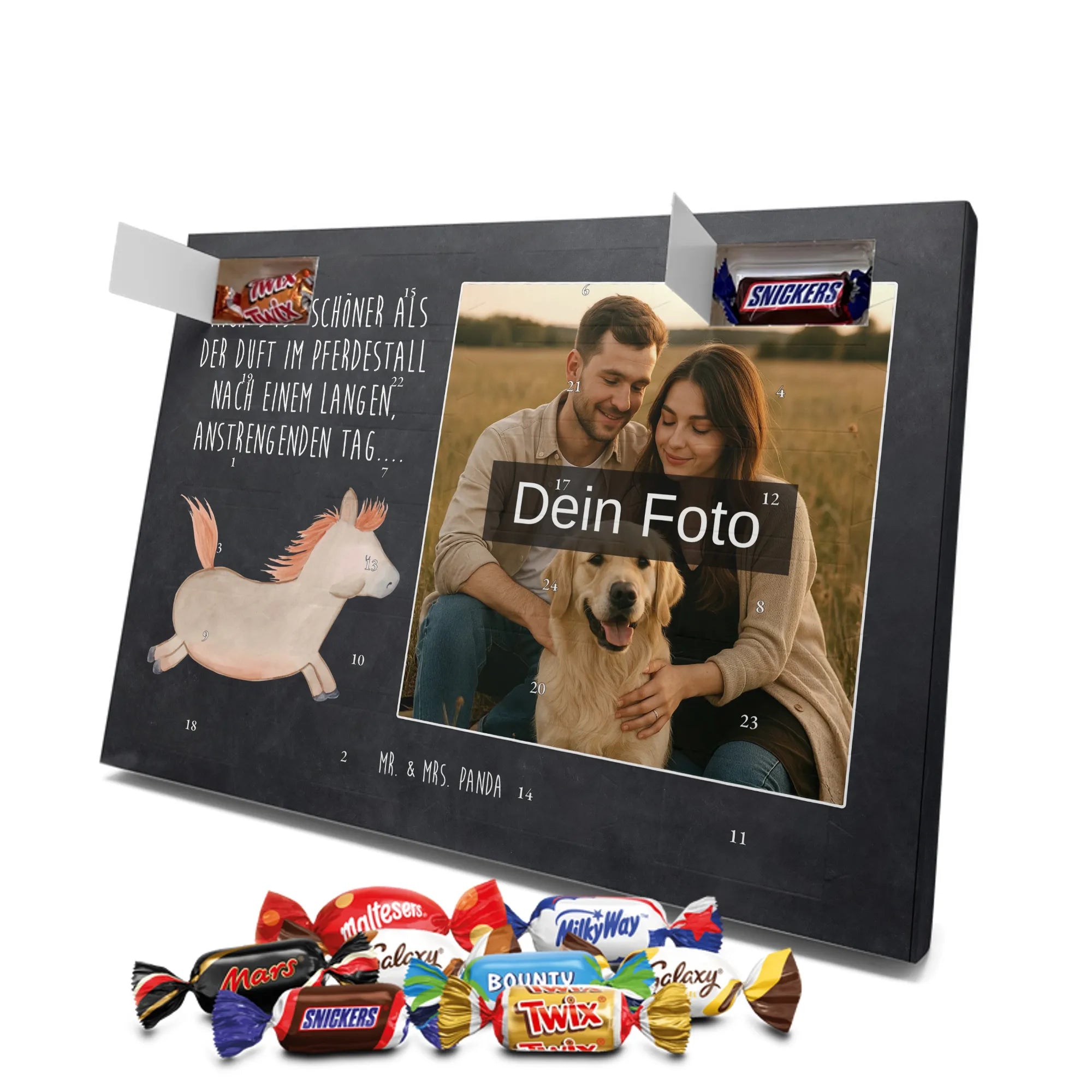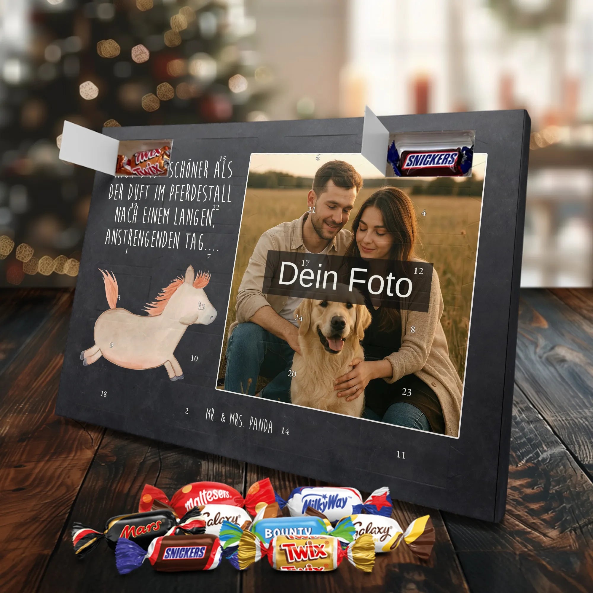 Herziger Personalisierter Foto Adventskalender mit Schokolade von Mr. & Mrs. Panda – perfekt, um schöne Erinnerungen sichtbar zu machen und jeden Dezembertag zu versüßen. Die Vorderseite ziert dein persönliches Foto, der Rest des Kalenders ist mit warmen Motiven und liebevollen Sprüchen von Mr. & Mrs. Panda gestaltet. Bitte lade ein Bild in hoher Auflösung hoch und prüfe den Bildausschnitt, damit nichts Wichtiges abgeschnitten wird. Verwende nur Fotos, bei denen du die Rechte besitzt oder die Zustimmung der abgebildeten Personen vorliegt. Unsere Drucke bestechen durch brillante Qualität und eine seidenmatte Oberflächenveredelung; auch die Seitenflächen sind bedruckt. Maße: 325 mm x 225 mm x 27 mm. Der Adventskalender lässt sich aufhängen oder aufstellen – ganz flexibel. Wichtiger Hinweis: Fotos werden nicht nachbearbeitet oder zugeschnitten; personalisierte Foto-Artikel sind vom Widerruf ausgeschlossen. Gefüllt ist der Kalender mit Celebrations Schokolade – 24 hochwertige Füllungen in 8 leckeren Sorten (Maltesers, Mars, Snickers, Twix, Milky Way, Bounty, Galaxy, Galaxy Caramel). Schenke ein persönliches Unikat, das Freude und Süße verbindet.