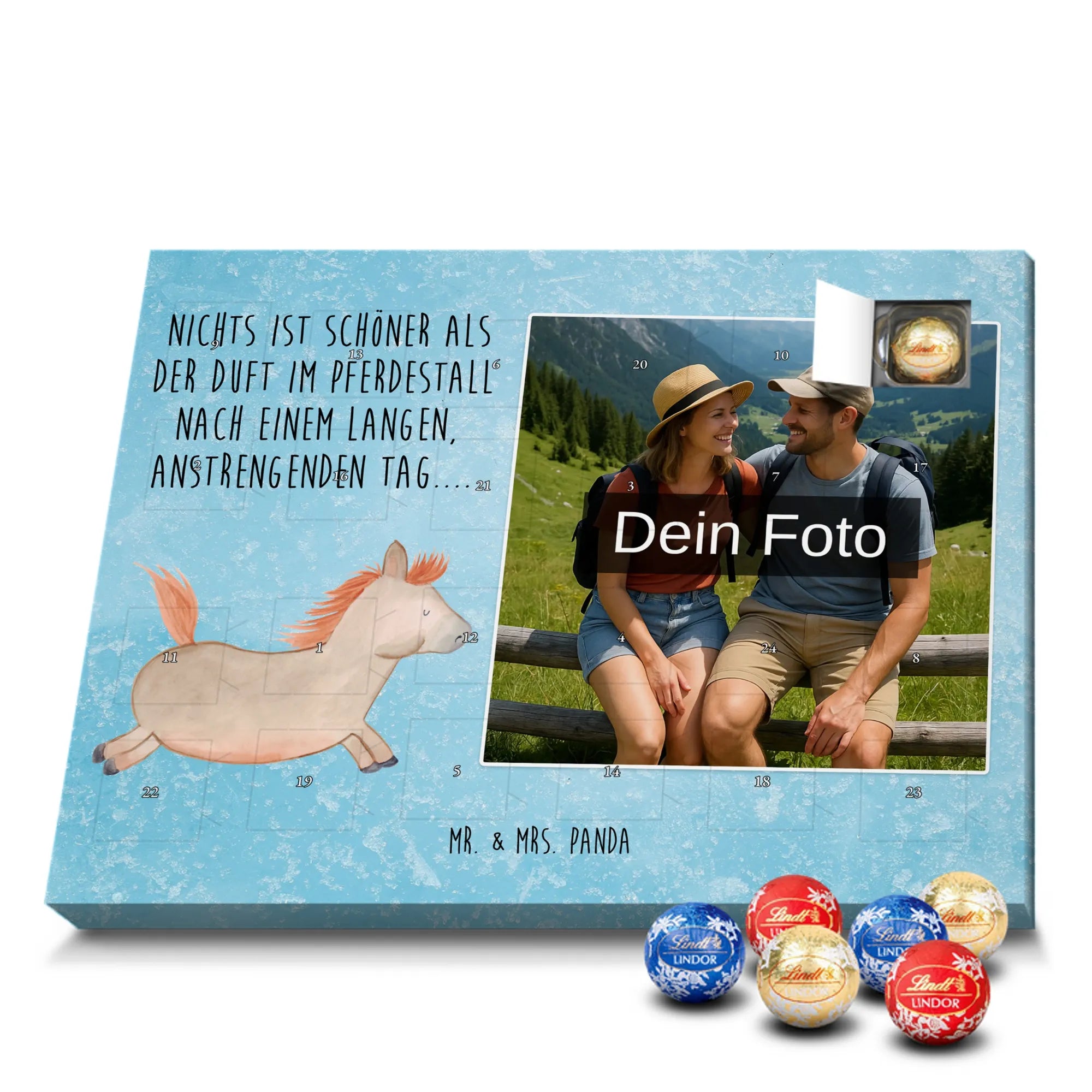 Mach die Adventszeit persönlich mit unserem Personalisiertes Schoko Foto-Adventskalender von Mr. & Mrs. Panda. Dieser Kalender kombiniert dein Lieblingsfoto mit unseren fröhlichen Illustrationen und liebevollen Sprüchen – perfekt als Geschenk für Partner, Familie oder Freunde. Für ein optimales Druckergebnis bitte ein hochauflösendes Bild verwenden und den Bildausschnitt so wählen, dass wichtige Details nicht verloren gehen. Beachte, dass wir Fotos nicht nachbearbeiten oder zuschneiden; lade nur Bilder hoch, für die du die Rechte besitzt. Die hochwertige Verarbeitung beinhaltet eine seidenmatte Oberflächenveredelung und bedruckte Seitenflächen, außerdem ist der Kalender robust und kann aufgehängt oder aufgestellt werden. Maße: 233 mm x 178 mm x 24 mm. Gefüllt mit Lindt Lindor Markenschokolade: 24 einzeln verpackte Kugeln in den Sorten Vollmilch, Feinherb und Weiße Schokolade. Inhaltsstoffe und Allergene sind angegeben; es kann Haselnüsse und Mandeln enthalten. Hinweis: Personalisierte Foto-Artikel sind vom Umtausch ausgeschlossen. Ein süßer, persönlicher Adventsgruß von Mr. & Mrs. Panda.