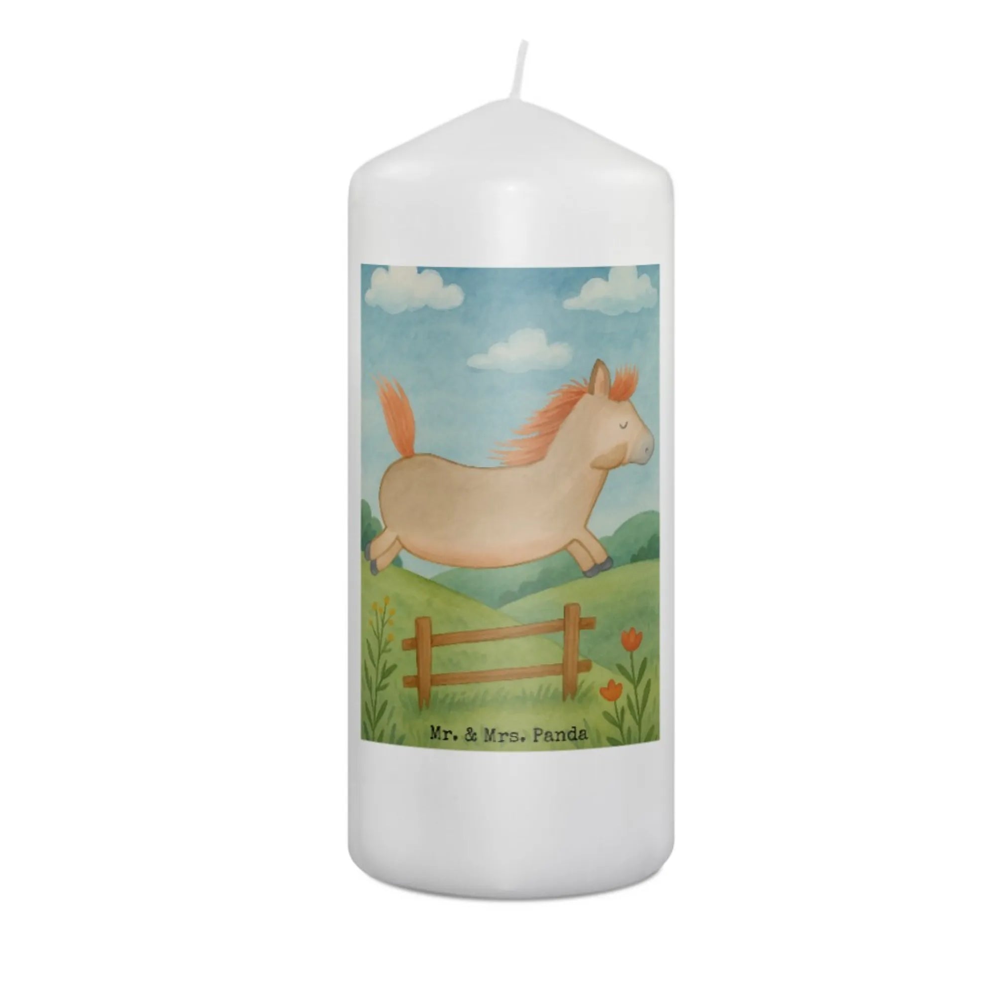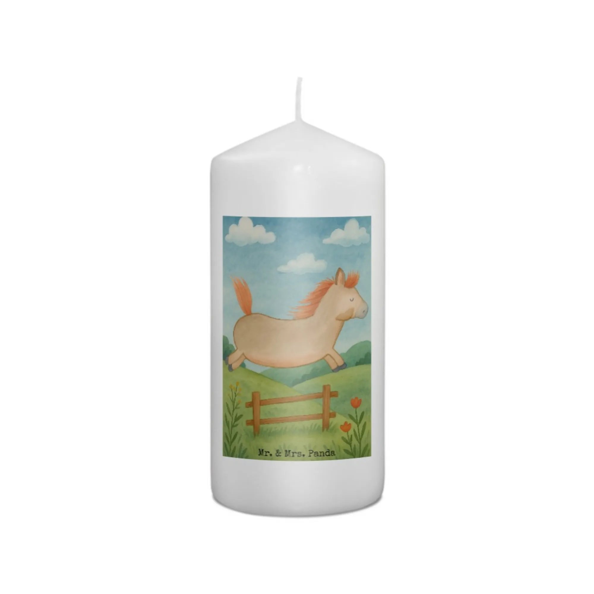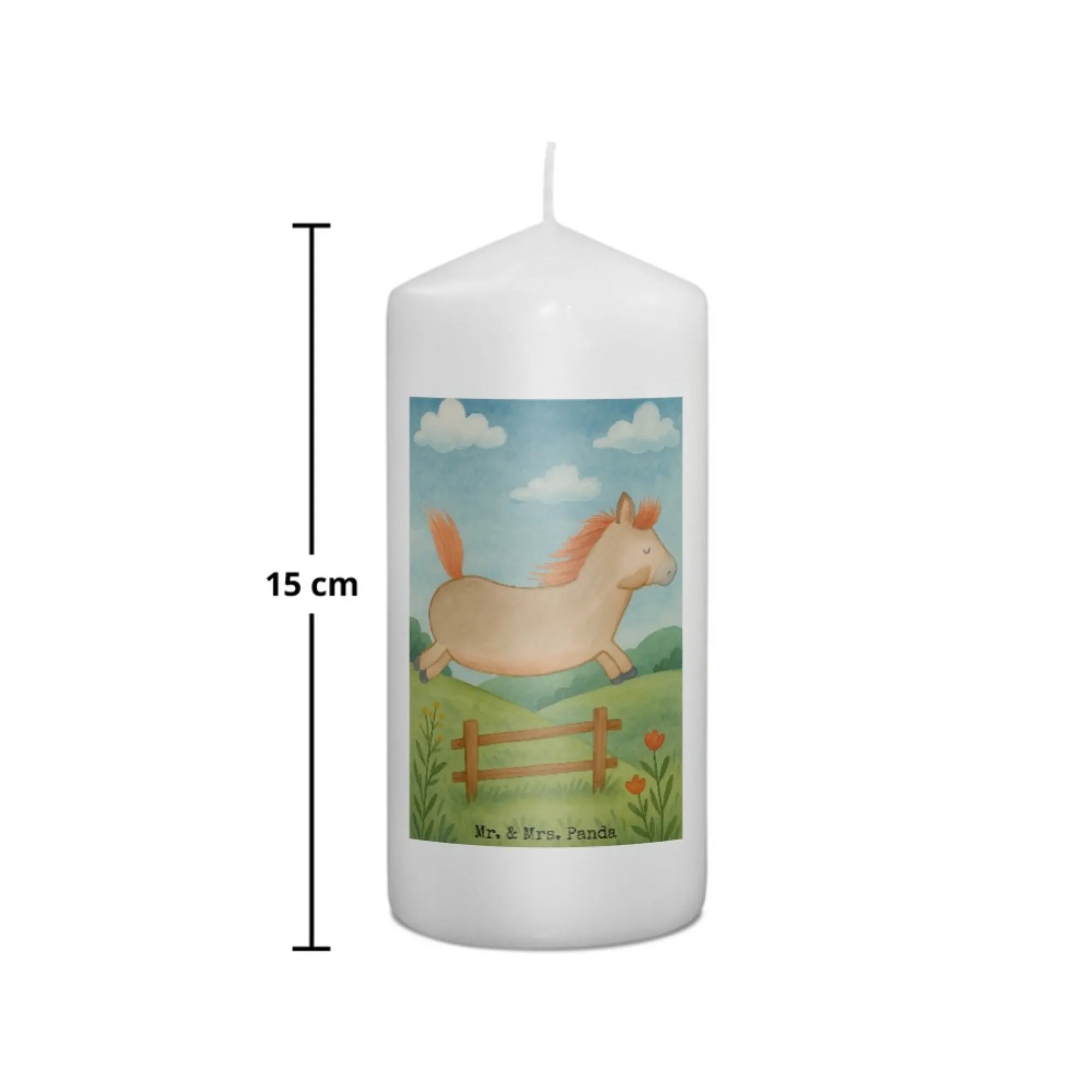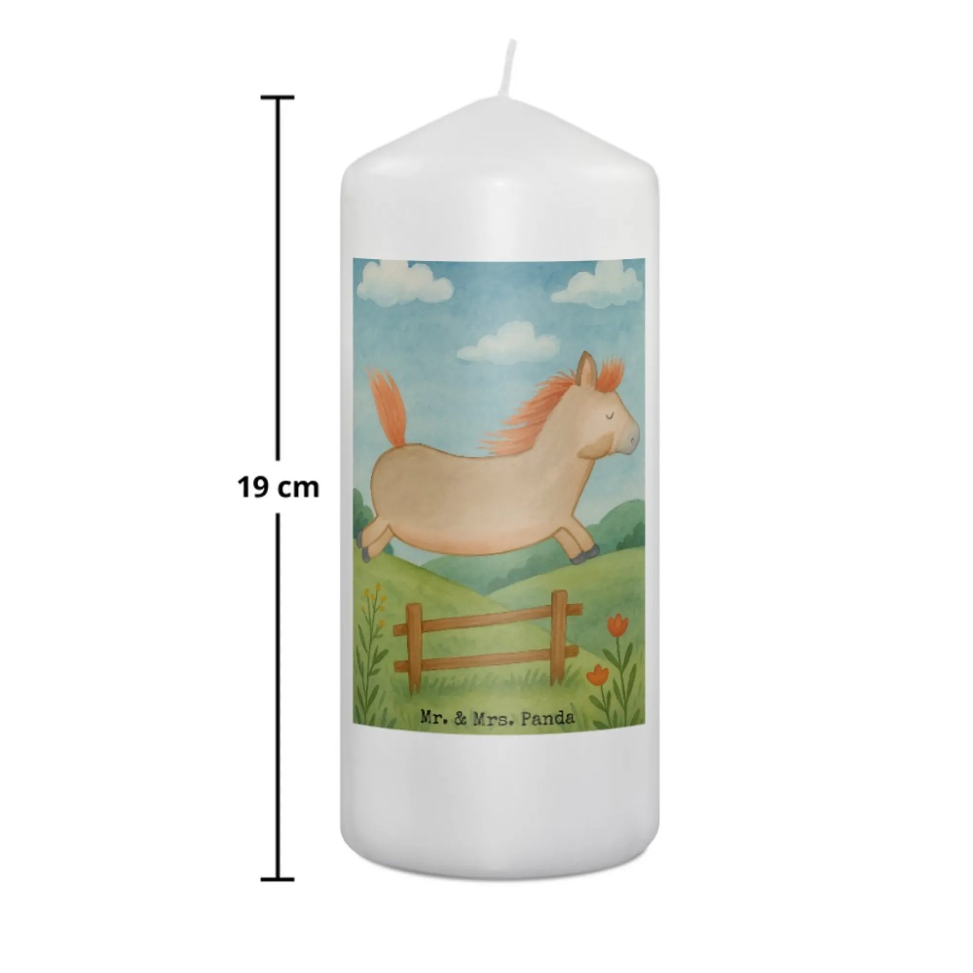 Kerze Pferd Springen Design - 15 x 7 cm - mit Spruch