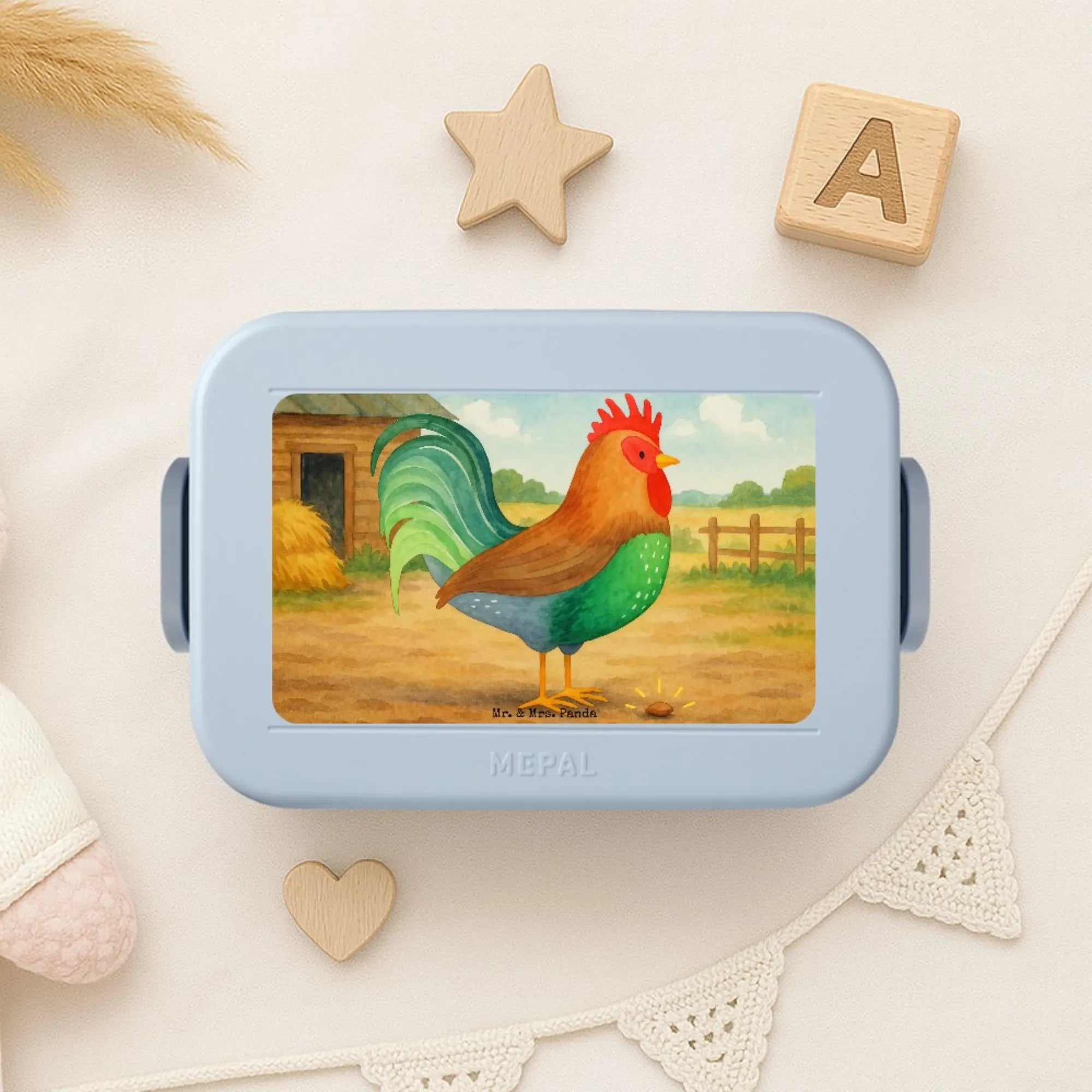 MEPAL Bentobox Hahn Korn Design - mit Spruch - Blau Pastell