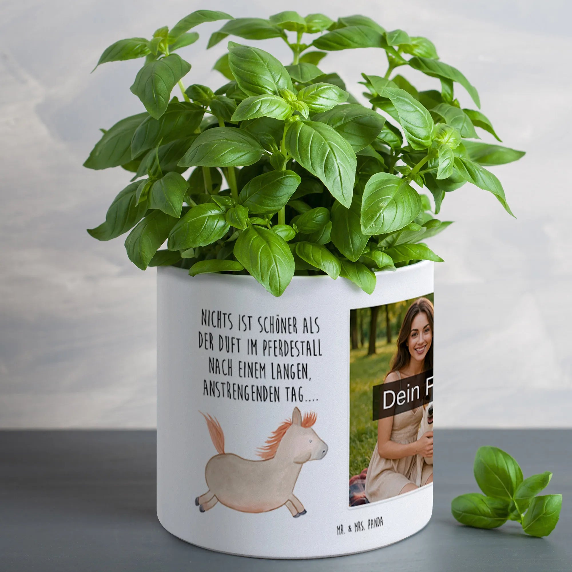 Willkommen zu deinem neuen Lieblingsstück! Der personalisierte Foto XL Blumentopf von Mr. & Mrs. Panda ist nicht nur ein praktischer Begleiter für deine Pflanzen, sondern auch ein wunderschönes Deko-Element. Dieser Blumentopf hat die Maße von 135 mm x 142 mm mit einem Durchmesser von 142 mm und ein Gewicht von 1110 g, perfekt für deine Kräuter oder andere größere Pflanzen. Der glänzende Keramiktopf kommt mit einem Entwässerungsloch und eignet sich somit optimal für drinnen und draußen. Mit deinem persönlichen Foto wird dieser Blumentopf zum echten Unikat! Achte darauf, dass dein Bild eine hohe Auflösung hat und der Ausschnitt gut passt, damit jedes Detail zur Geltung kommt. Pflege ihn ganz einfach, denn er ist spülmaschinenfest und sorgt dafür, dass deine Pflanzen immer gut aussehen. Ob auf dem Balkon, der Terrasse, im Garten oder auf der Fensterbank – dieser Blumentopf ist überall ein Hingucker!