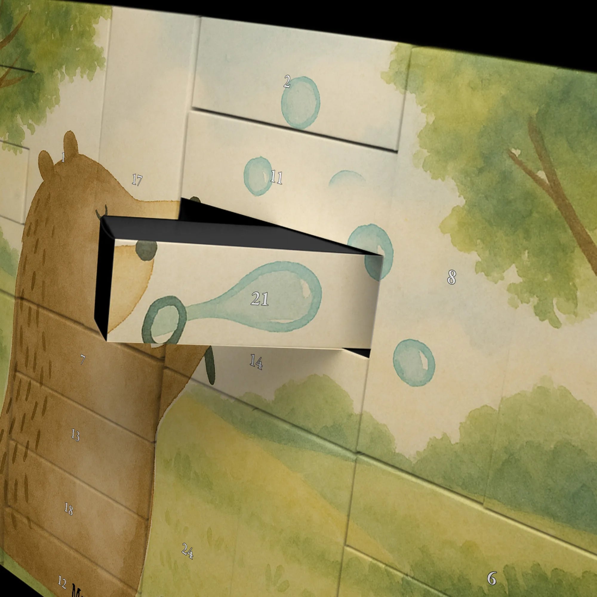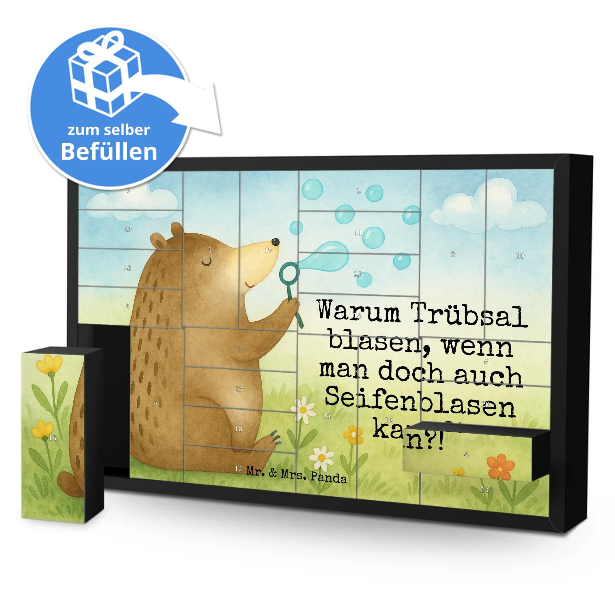 Entdecke den befüllbaren Adventskalender "Bär Seifenblasen" von Mr. & Mrs. Panda.