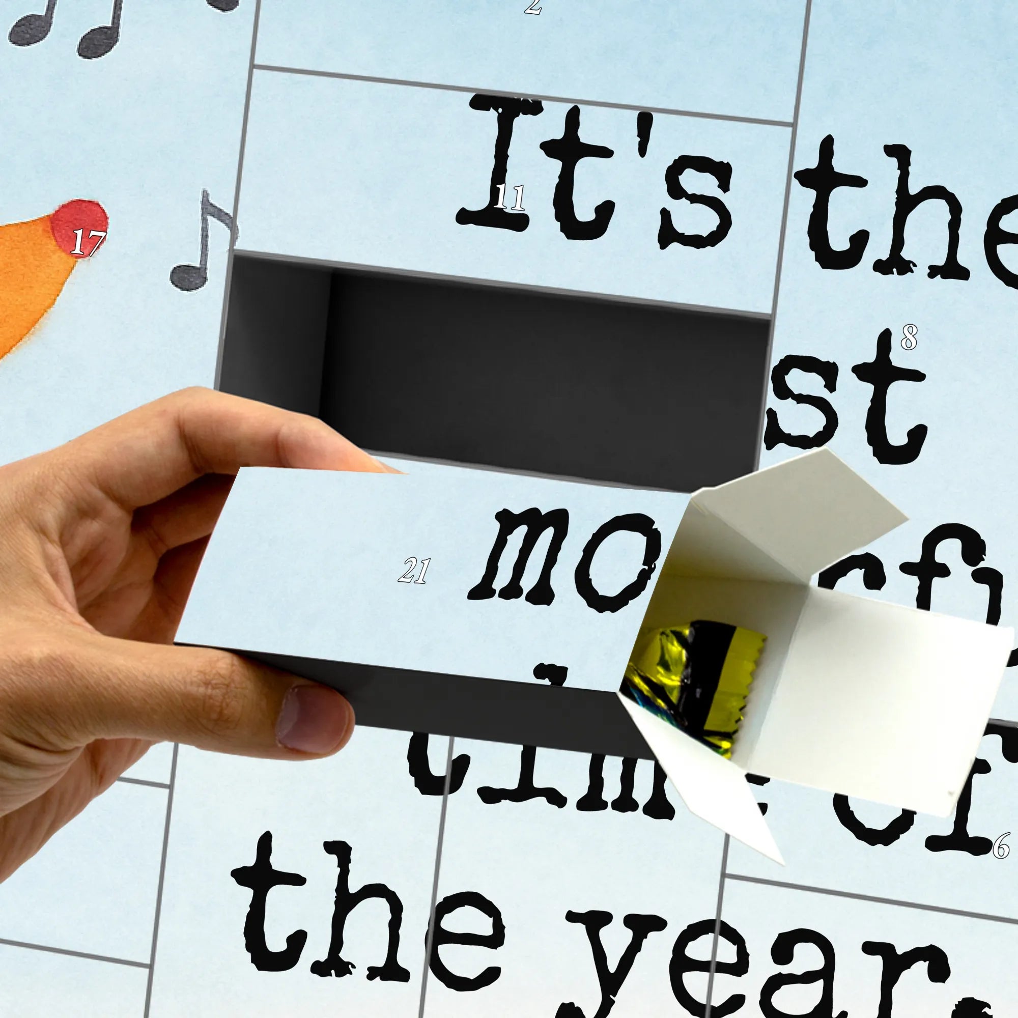 Perfekt als Adventskalender zum Selbstbefüllen – mit 24 Schachteln, die du individuell füllen kannst. Ob kleine Süßigkeiten, Mini-Gutscheine, musikalische Kleinigkeiten oder selbstgemachte Überraschungen: Dieser Kalender macht das Übergangsrätsel vom Aufwachen bis Heiligabend zu einem ganz persönlichen Erlebnis. Er ist ideal für Familien, Kinder, Chormitglieder, Musiklehrerinnen und Musiklehrer oder als besonderes Geschenk für Sängerinnen und Sänger.