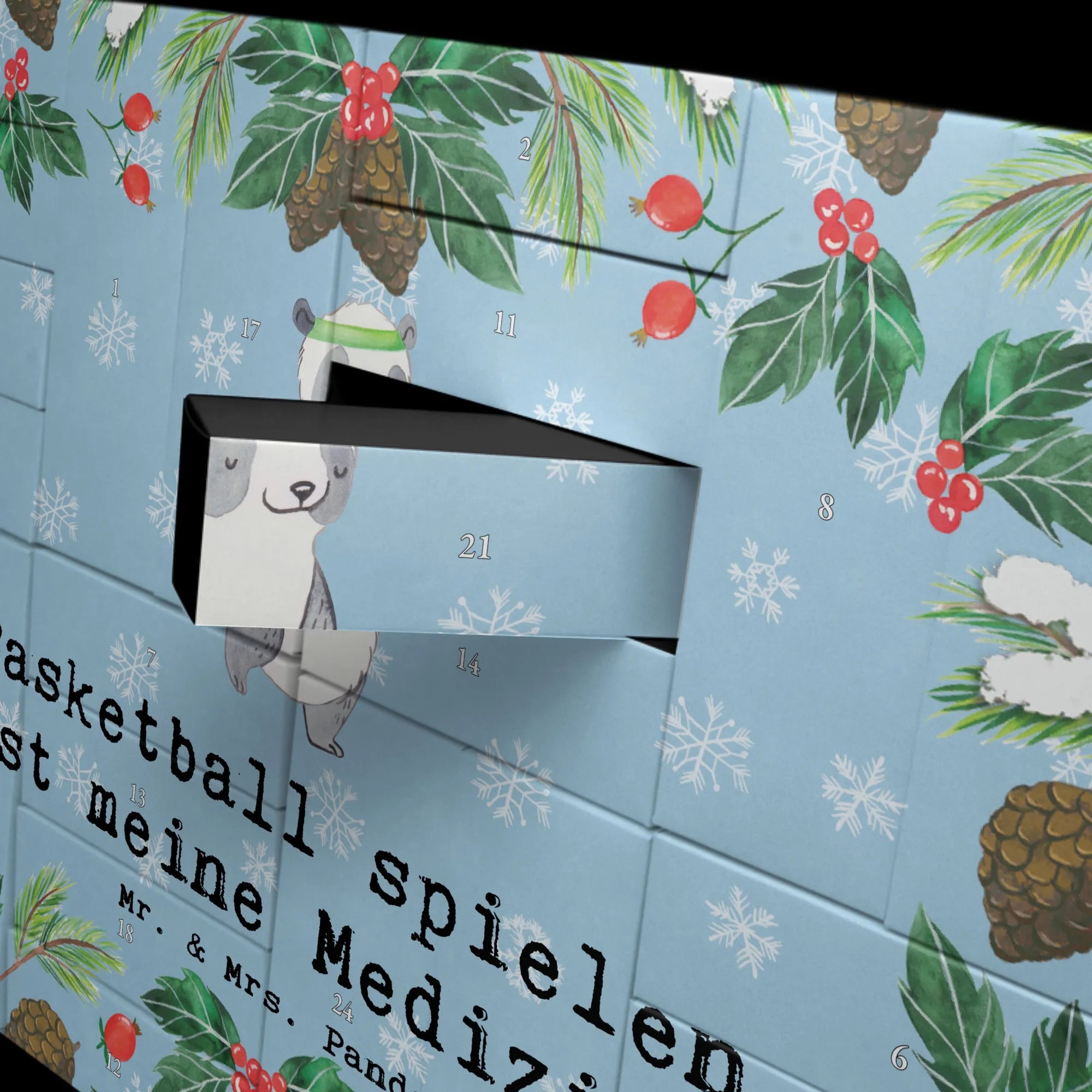 Fillable advent calendar panda basketball - Chalkboard