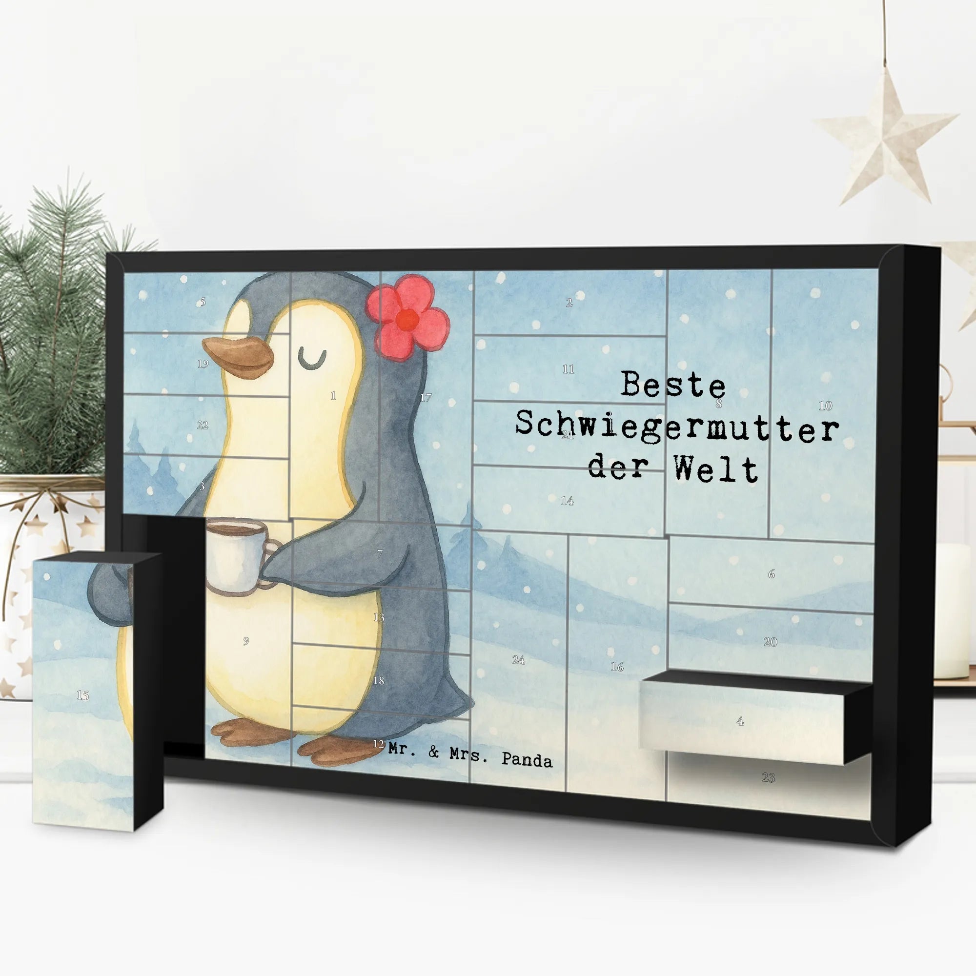 Suchst du ein liebevolles Geschenk für deine Schwiegermutter? Unser befüllbarer Adventskalender „Pinguin – Beste Schwiegermutter der Welt“ von Mr. & Mrs. Panda vereint Humor, Herzlichkeit und stilvolle Gestaltung. Die handgezeichnete Aquarell-Illustration von Mrs. Panda zeigt einen gemütlichen Pinguin mit einer Tasse Kaffee – ein Motiv, das sofort ein Lächeln schenkt.