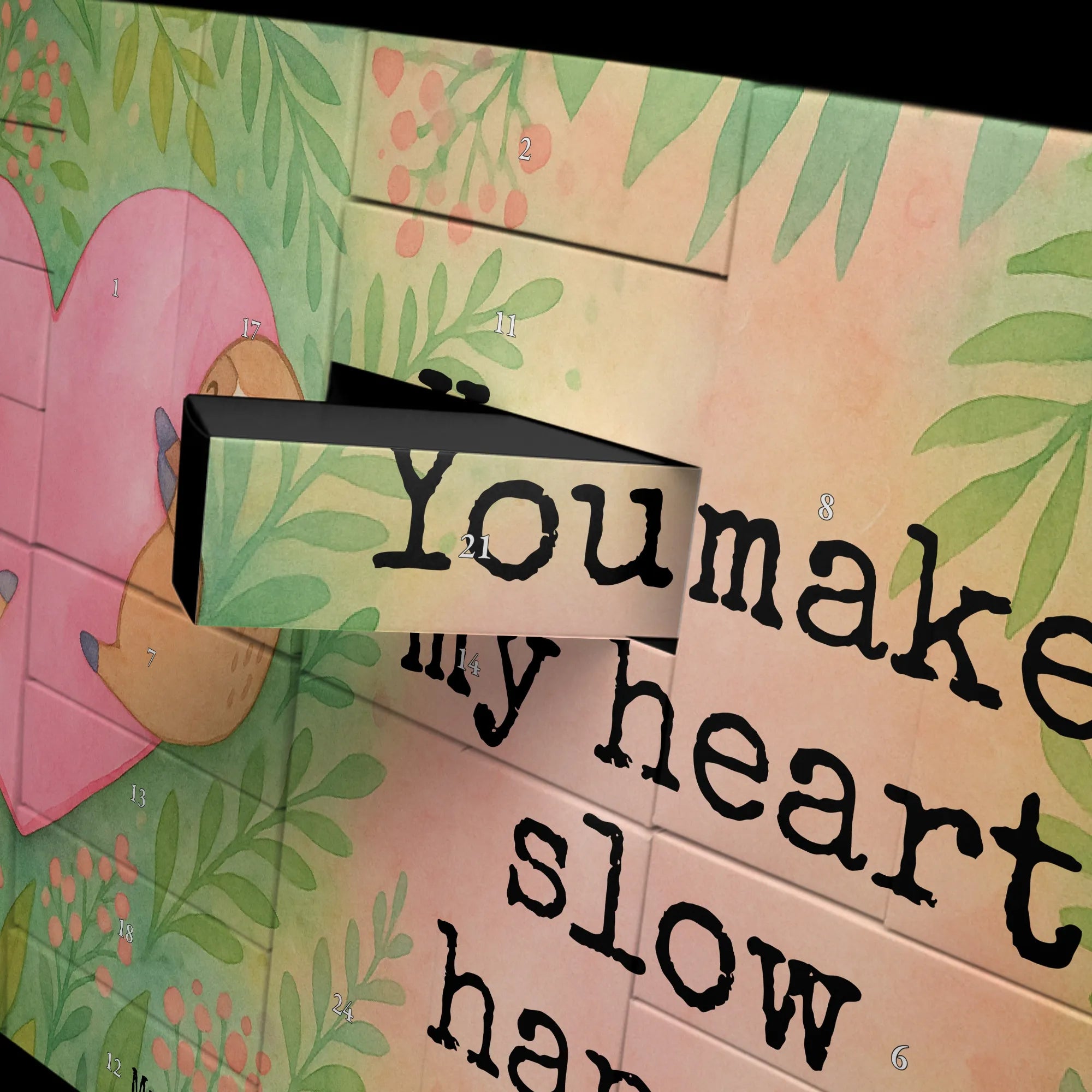 In a dreamy watercolor backdrop of soft pinks, two adorable sloths snuggle up within the heart-shaped space, perfectly embodying warmth and love. The soothing brown tones of their fur and the gentle expressions on their faces transform this motif into a powerful representation of affection. With the heartfelt saying, 'You make my heart slow happy!', it's a beautiful reminder of those precious moments spent with your loved one. This design is perfect for expressing your feelings on Valentine's Day, anniversaries, or just to make any day special. It's not just a piece of art; it’s a token of love that speaks volumes—ideal for anyone looking to gift their girlfriend, partner, or even husband something truly meaningful.
