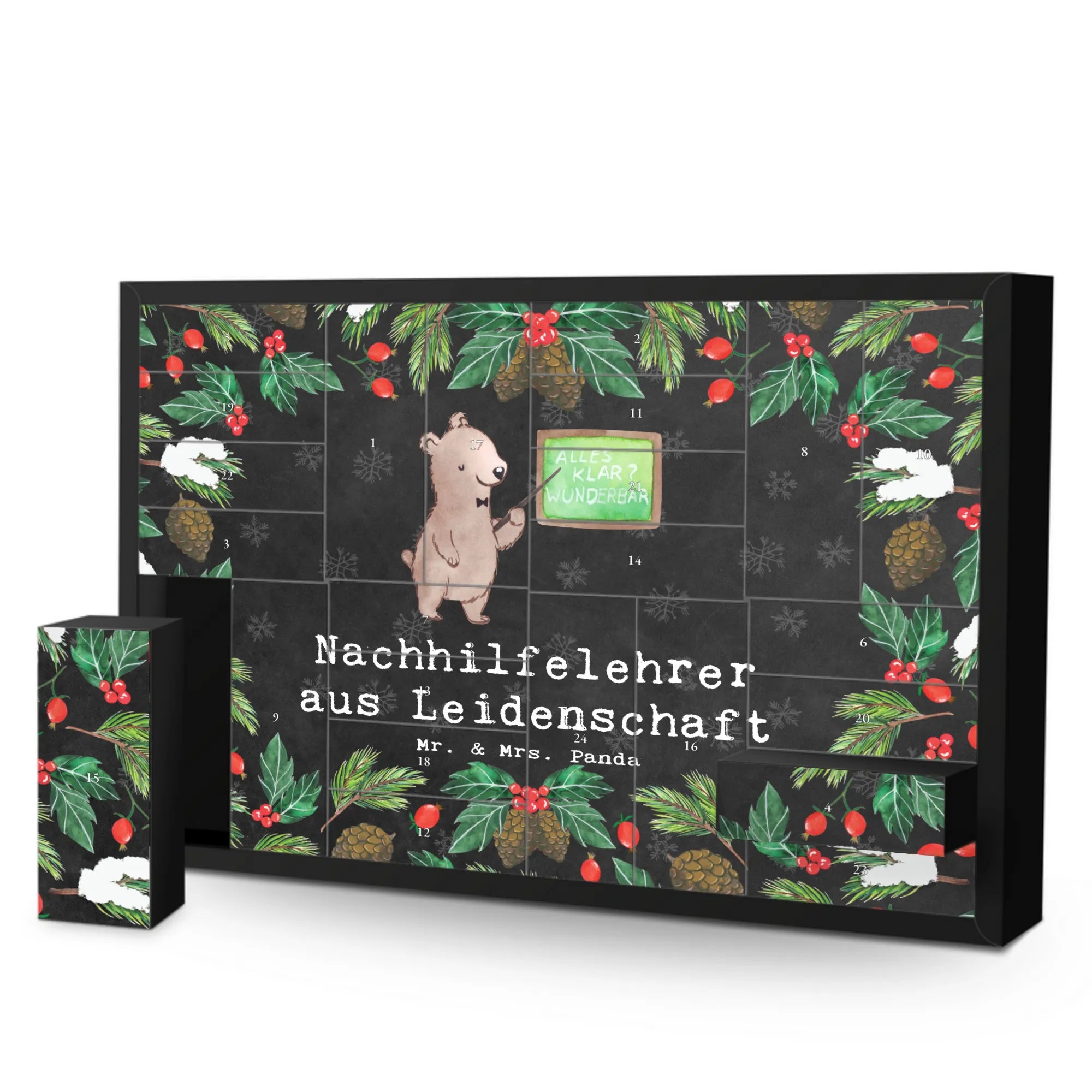 Der Befüllbare Adventskalender "Nachhilfelehrer aus Leidenschaft" von Mr. & Mrs. Panda ist das perfekte Geschenk für alle, die in der Nachhilfe tätig sind oder Lehrer kennen. Er bietet nicht nur die Möglichkeit, die Vorweihnachtszeit festlich zu gestalten, sondern zeigt auch, wie sehr du die Arbeit der Nachhilfelehrer schätzt.
