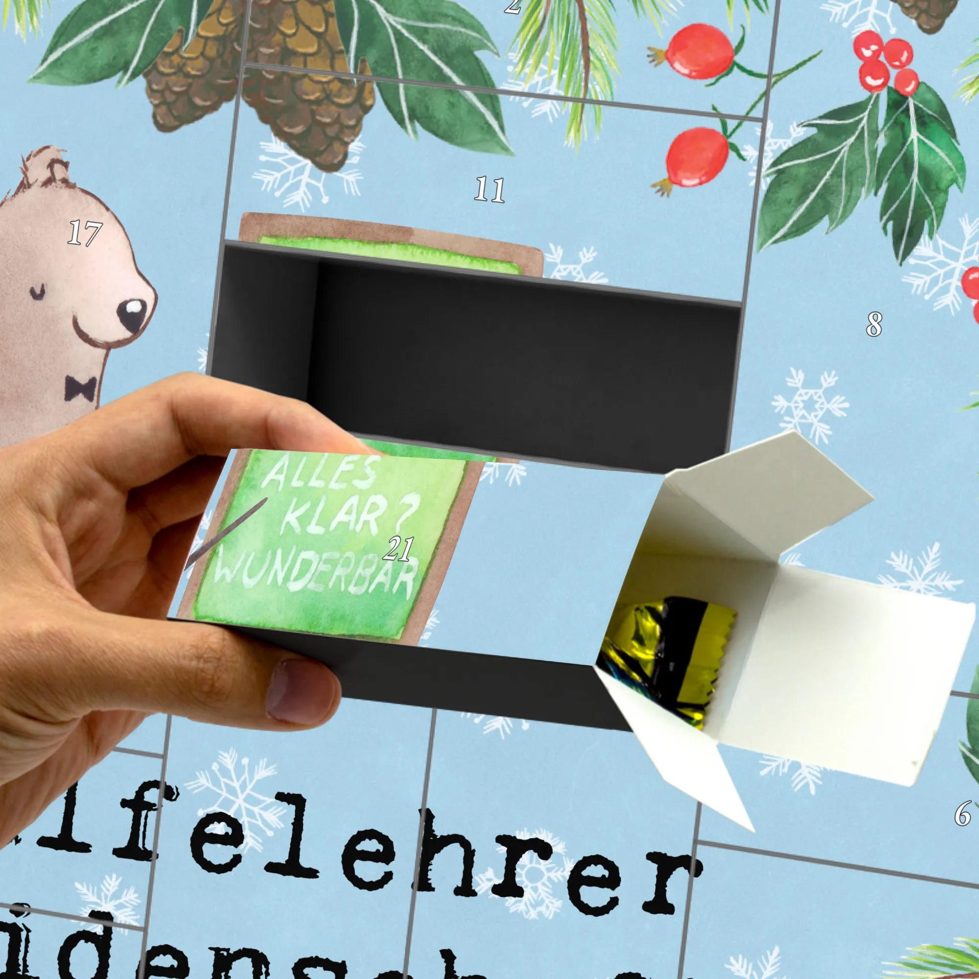 Ein einzigartiges Geschenk für Nachhilfelehrer, das sicher in Erinnerung bleibt und Freude bereitet. Verschenke diesen Adventskalender zur Weihnachtszeit oder einfach, um deiner Wertschätzung Ausdruck zu verleihen. Er wird für Schüler, Angestellte der Nachhilfeschule oder auch als kleine Überraschung für einen Kollegen zum Berufsjubiläum genau der richtige Weg sein, um zu zeigen, wie wichtig ihre Arbeit ist.