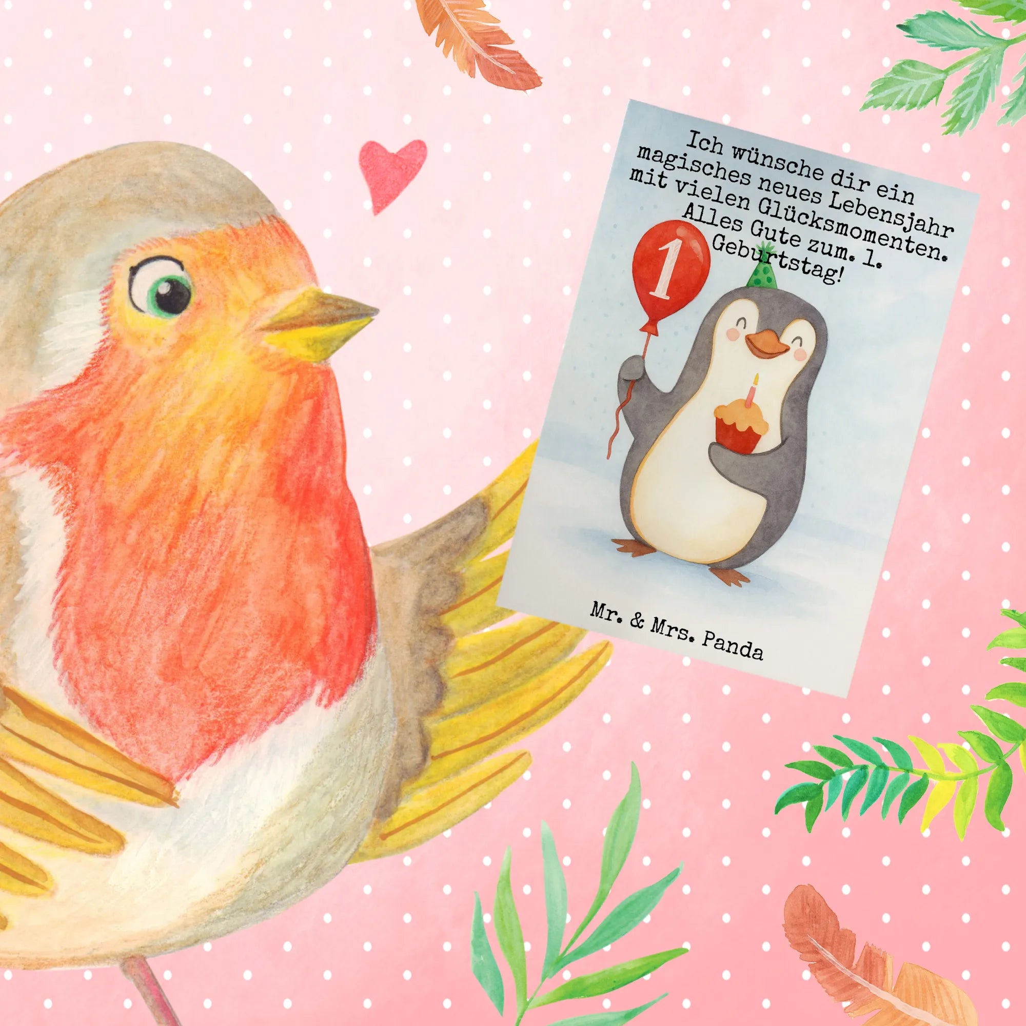 Allow us to introduce our delightful little penguin, ready for its big day with a festive hat and a cheerful balloon! It’s here to celebrate its 1st birthday! The slogan, 'Ich wünsche dir ein magisches neues Lebensjahr mit vielen Glücksmomenten. Alles Gute zum 1. Geburtstag!' reflects the pure joy that envelops this special occasion. This charming motif embodies the wonder and excitement of beginnings, serving as a perfect reminder that birthdays are not just about growing older but celebrating the beautiful journey ahead. Whether on a birthday present or as part of the party decor, our cute penguin encourages everyone to savor each moment filled with laughter and warmth. So here’s to a year ahead that sparkles with magic and happiness!