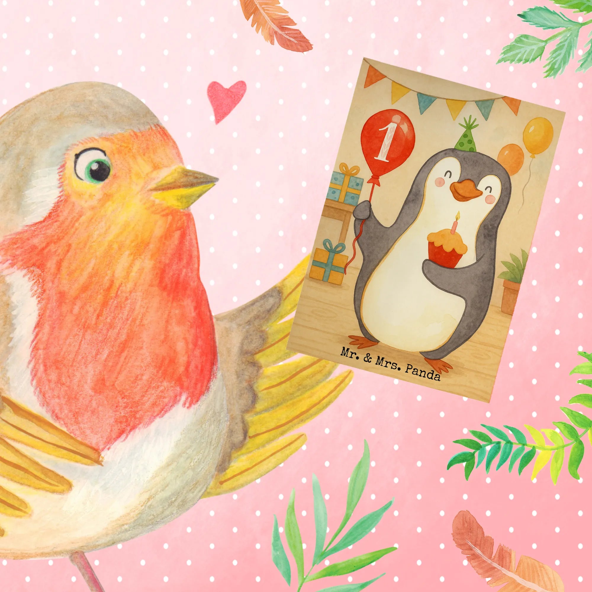 Greetings card 1st birthday Penguin Balloon Design - with saying