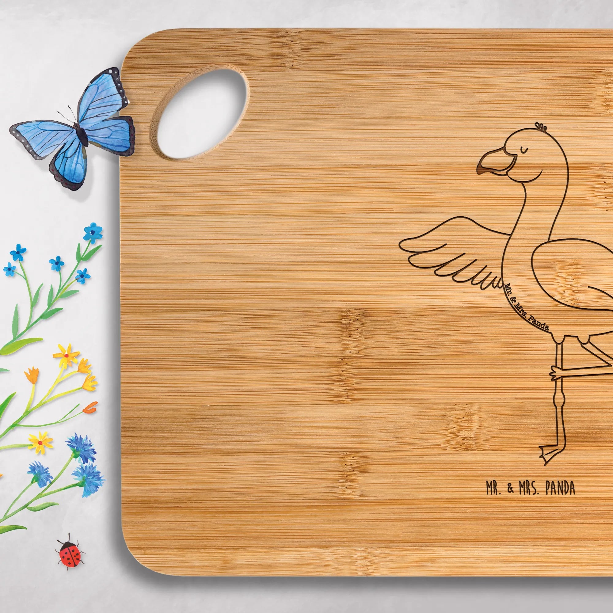 Bamboo chopping board flamingo yoga - with saying