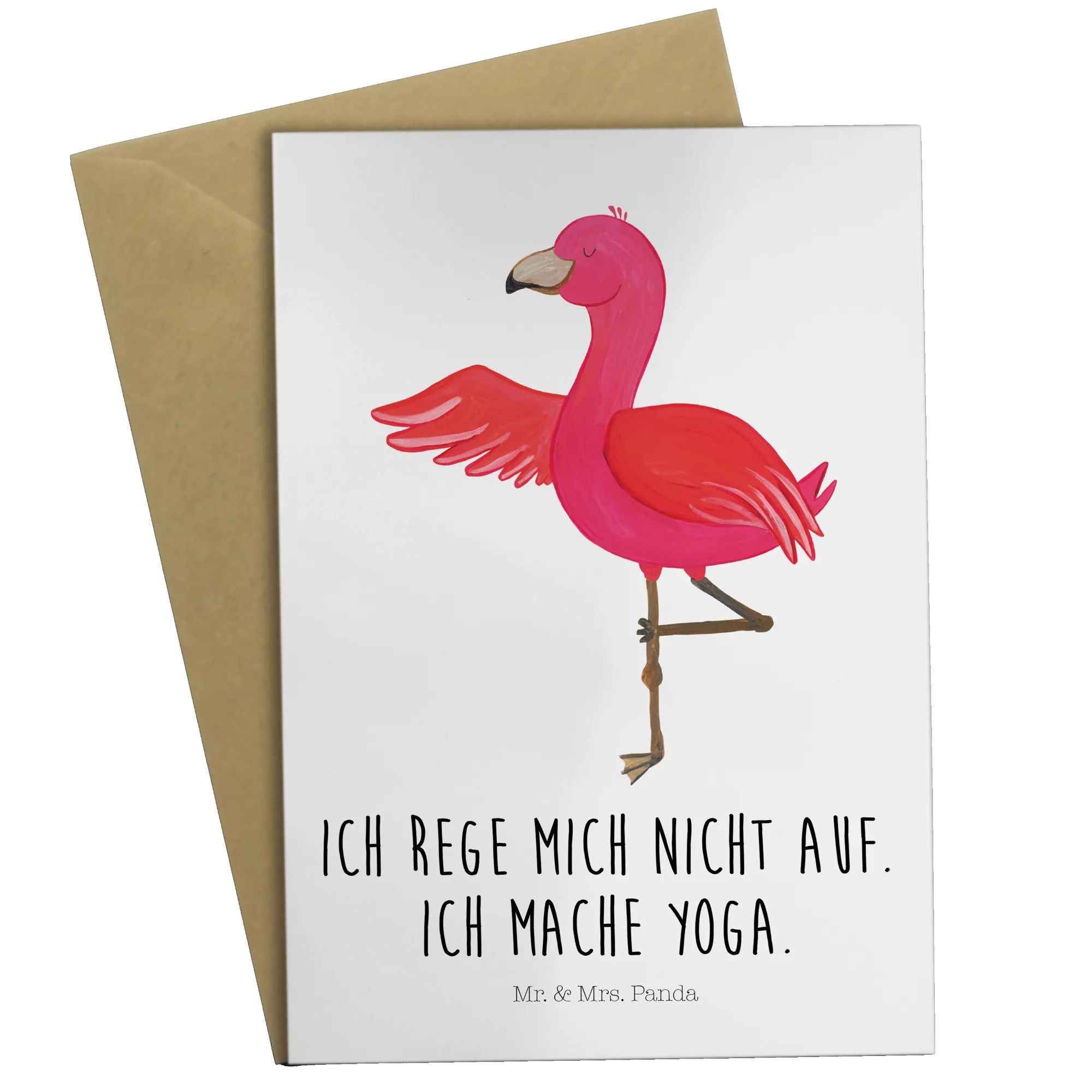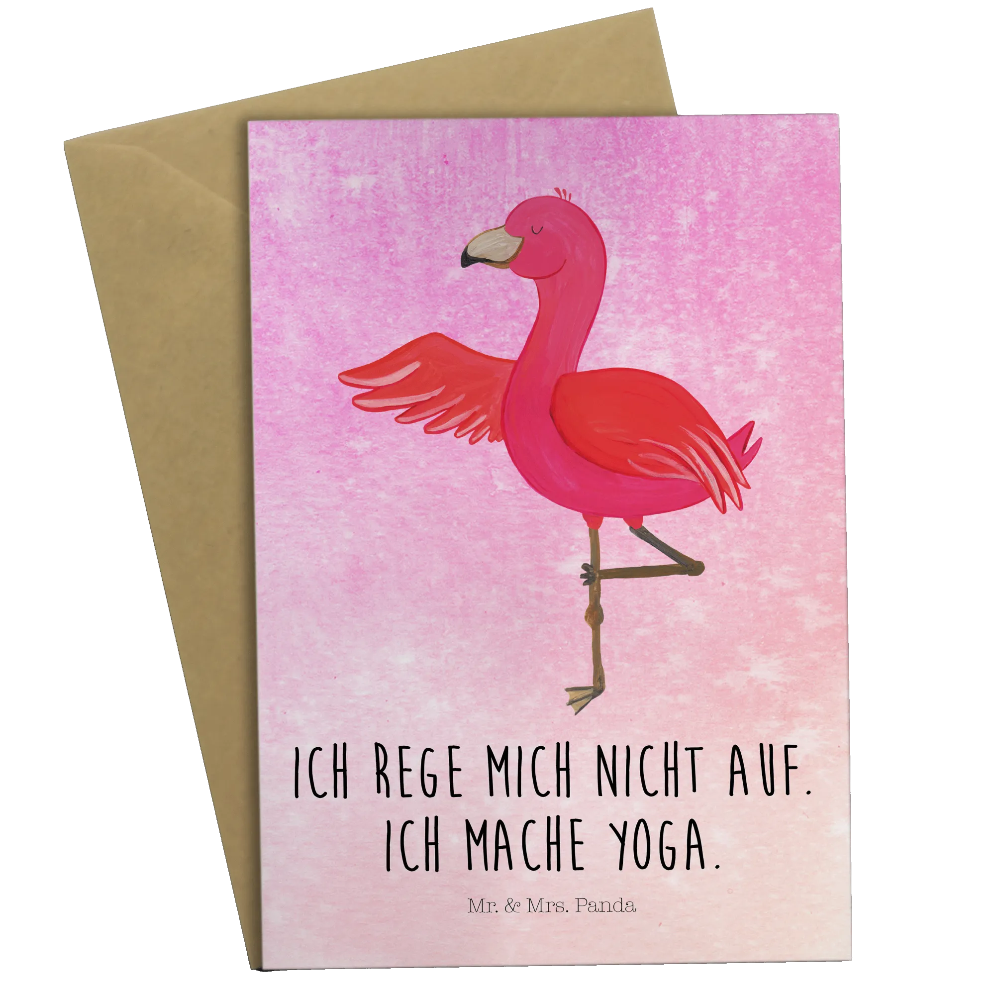 Greetings card flamingo yoga - with saying - Watercolor Pink