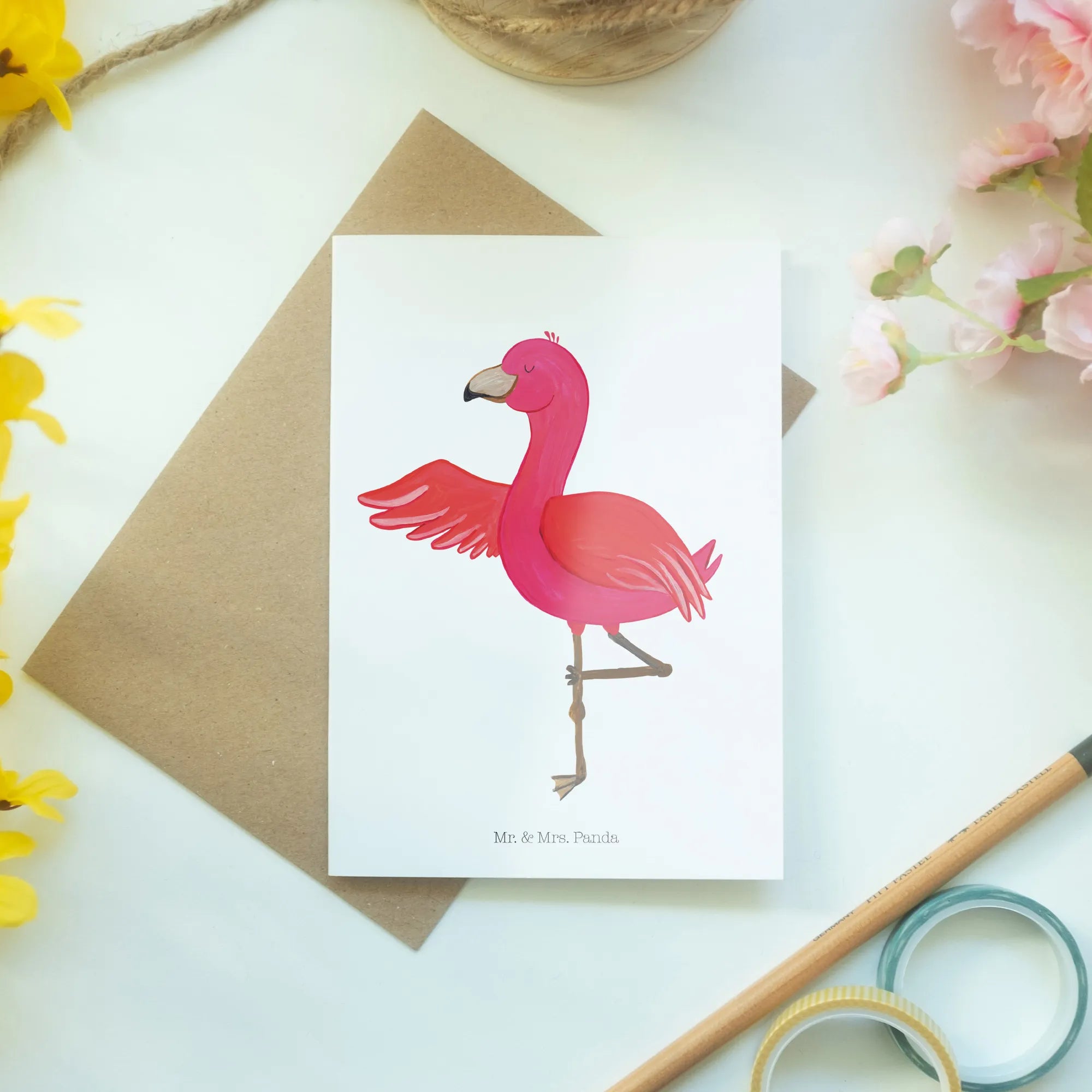 Introducing the delightful Flamingo Yoga Greetings Card from the charming Flamingo Collection by Mr. & Mrs. Panda! This lovely card is perfect for all occasions, whether you're celebrating a birthday, sending wedding wishes, or simply reaching out to a friend with a thoughtful message. Measuring 148 mm x 105 mm (6 x 4 inches), it offers ample space for your personal note while maintaining a compact size for easy handling.