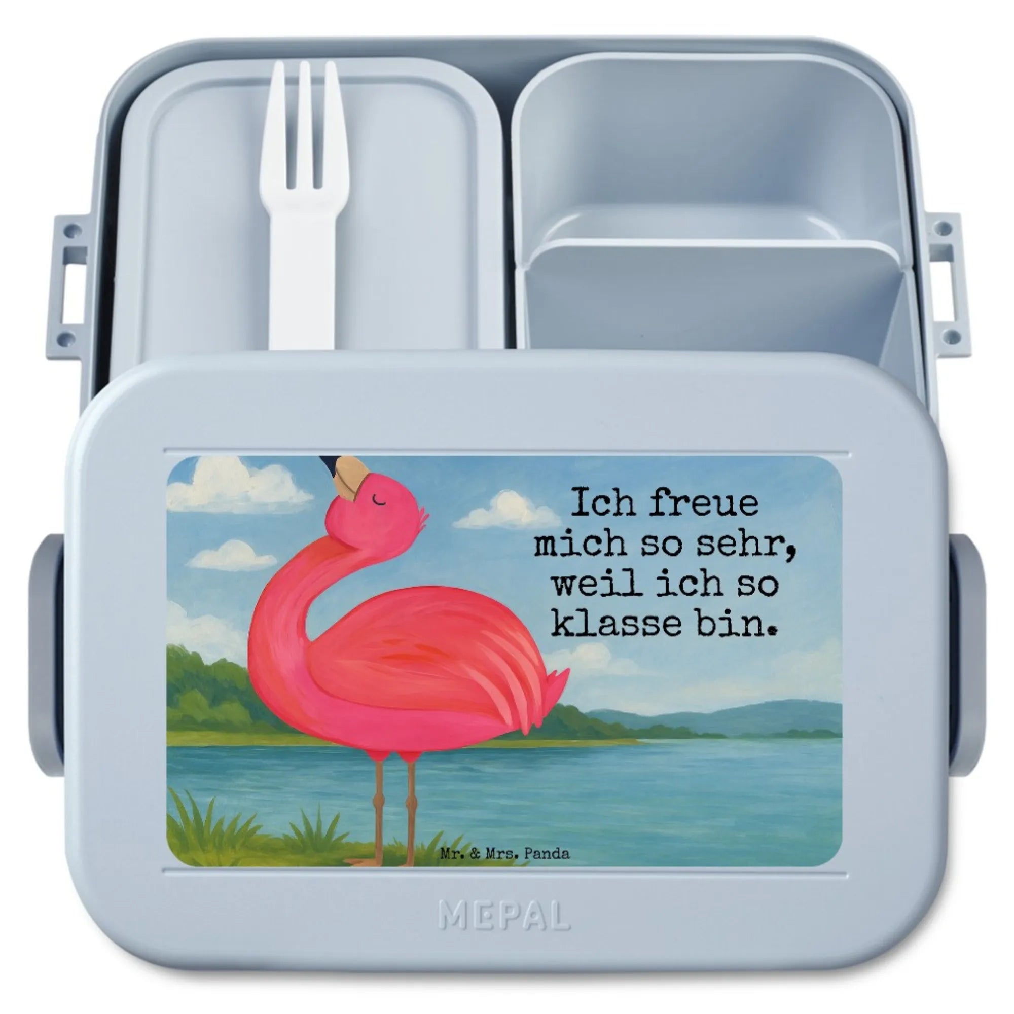 MEPAL Bentobox Flamingo Stolz Design - mit Spruch - Blau Pastell