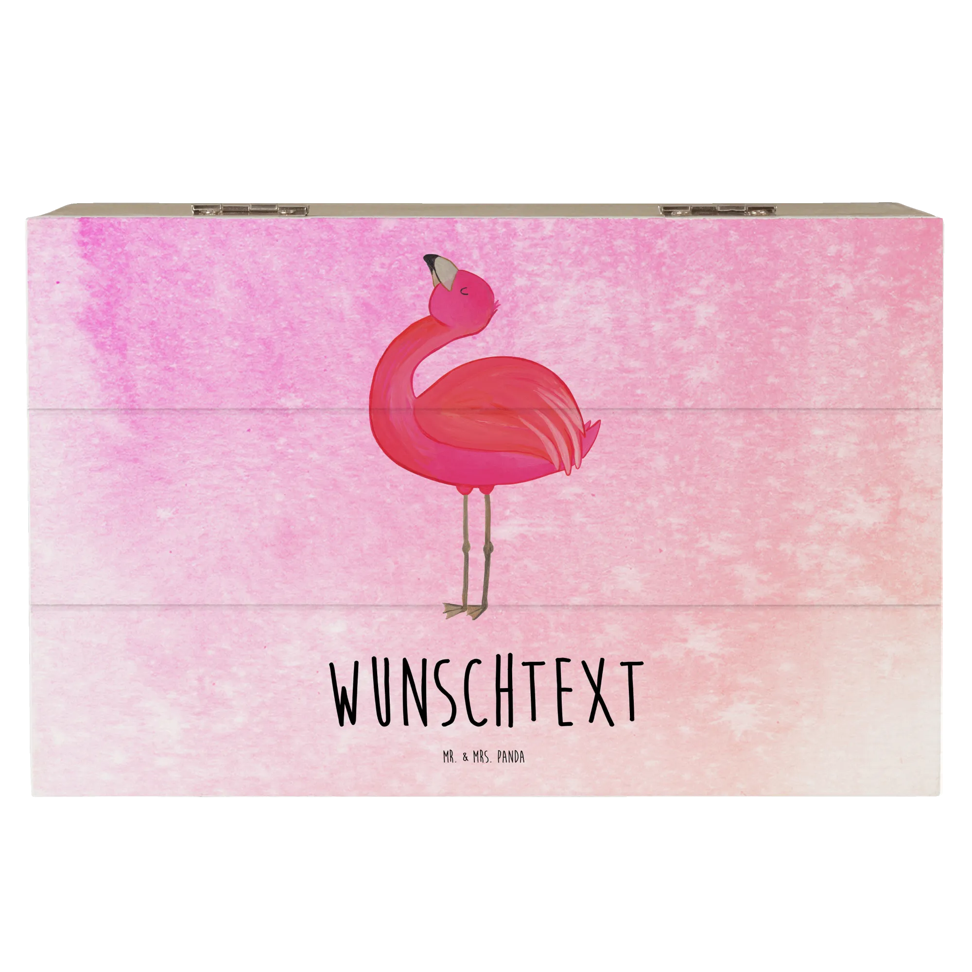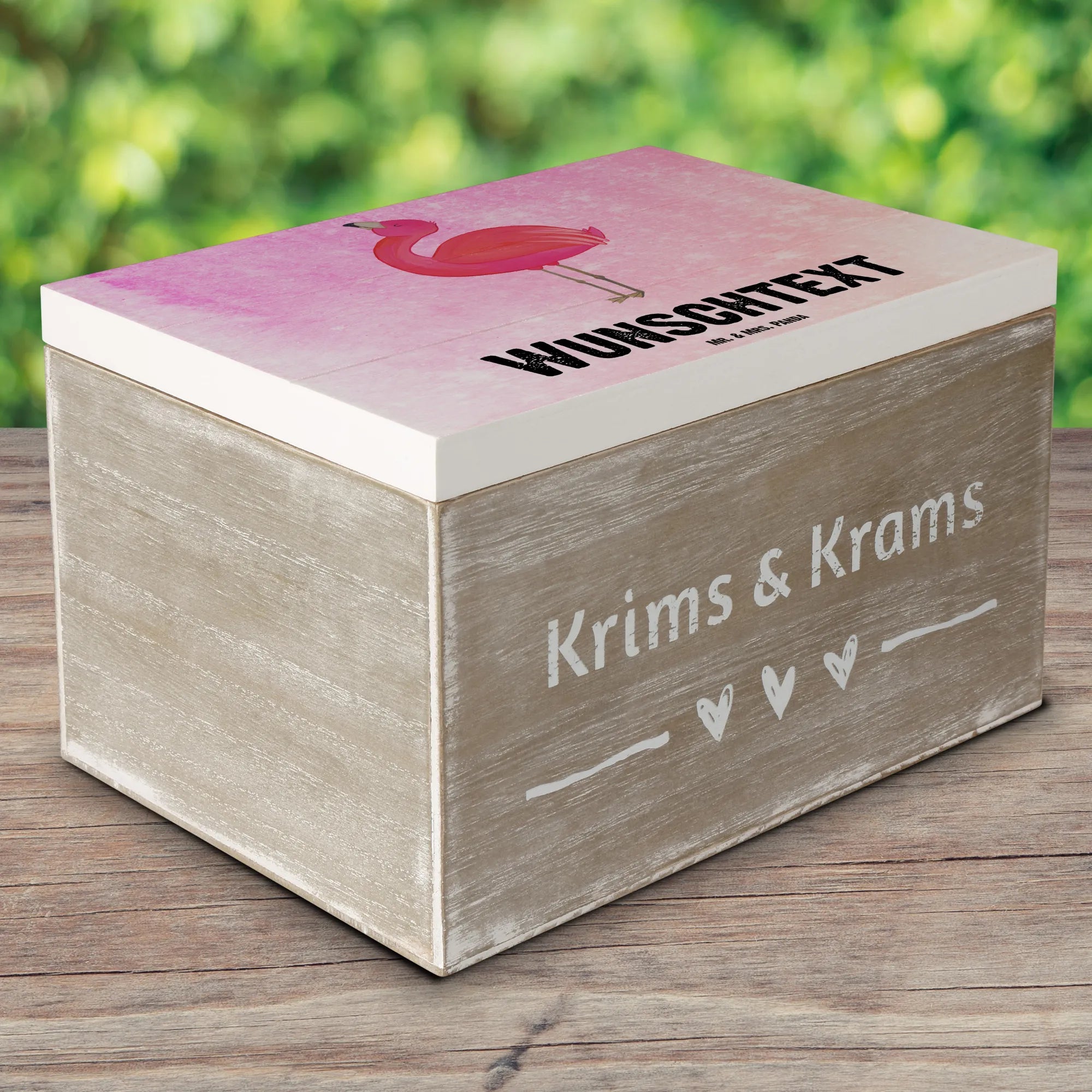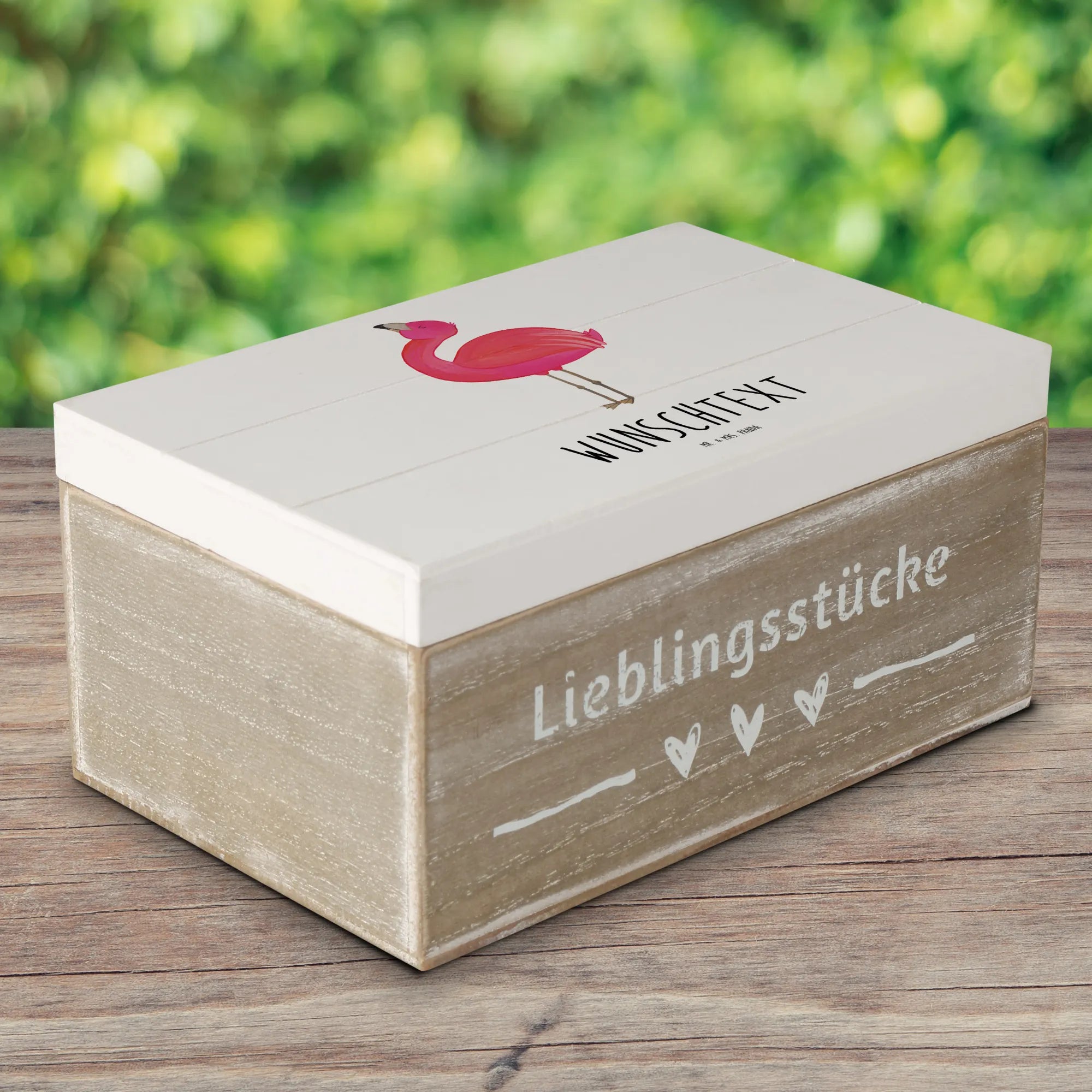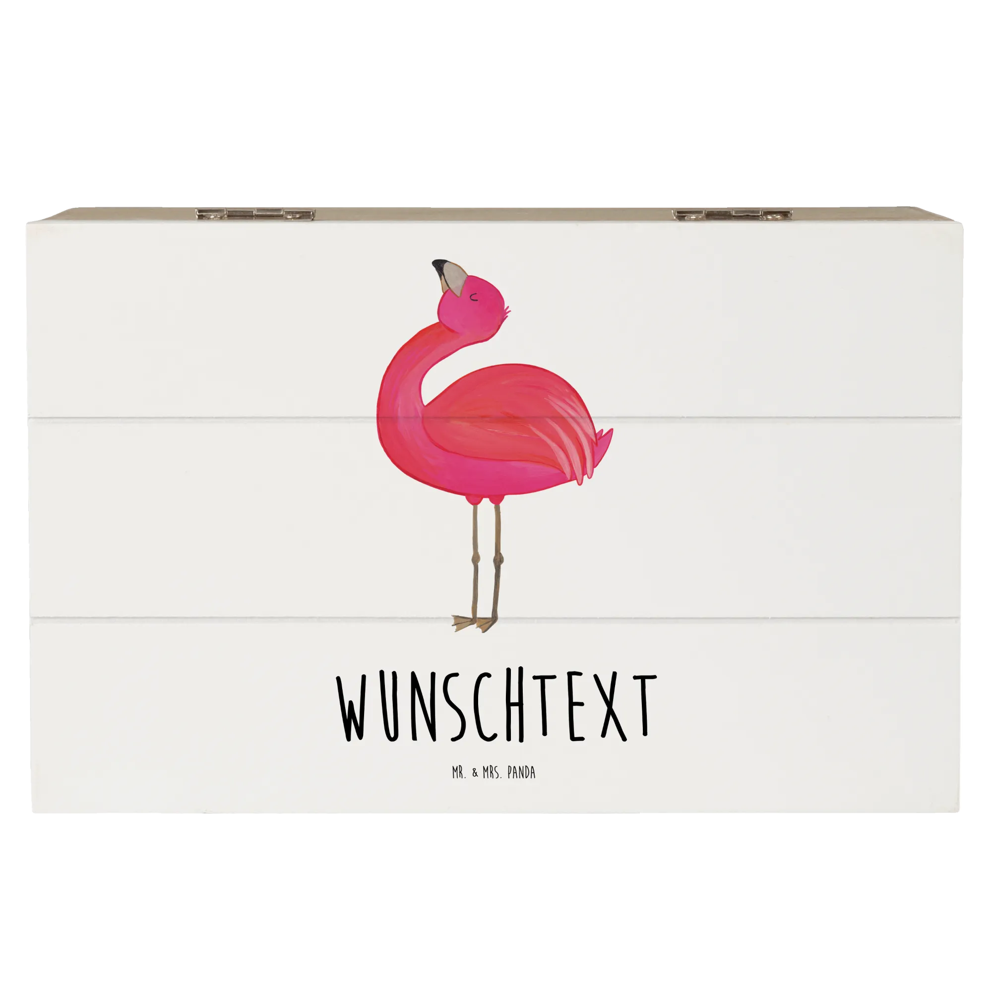 Personalised wooden chest flamingo Proud - 22 x 15 cm - White