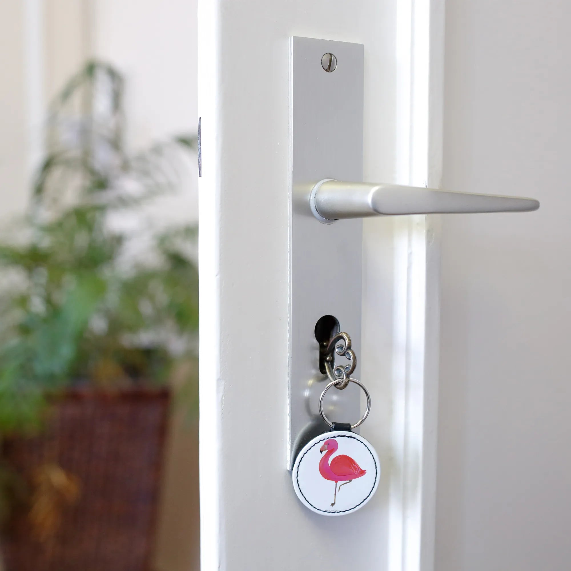 Round key ring flamingo Classic - with a saying - Watercolor Pink
