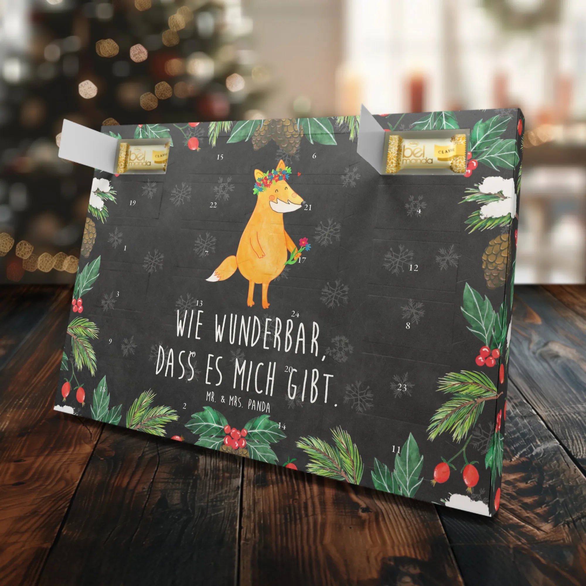 Häng ihn auf oder stelle ihn auf – ganz nach deinem Geschmack! Perfekt geeignet für den Adventsmonat, als kleines Motivationsgeschenk oder um Freunden und Familie deine Liebe zu zeigen. Der Adventskalender ist ein toller Liebesbeweis für alle Fuchs-Liebhaber und Naturliebhaber.