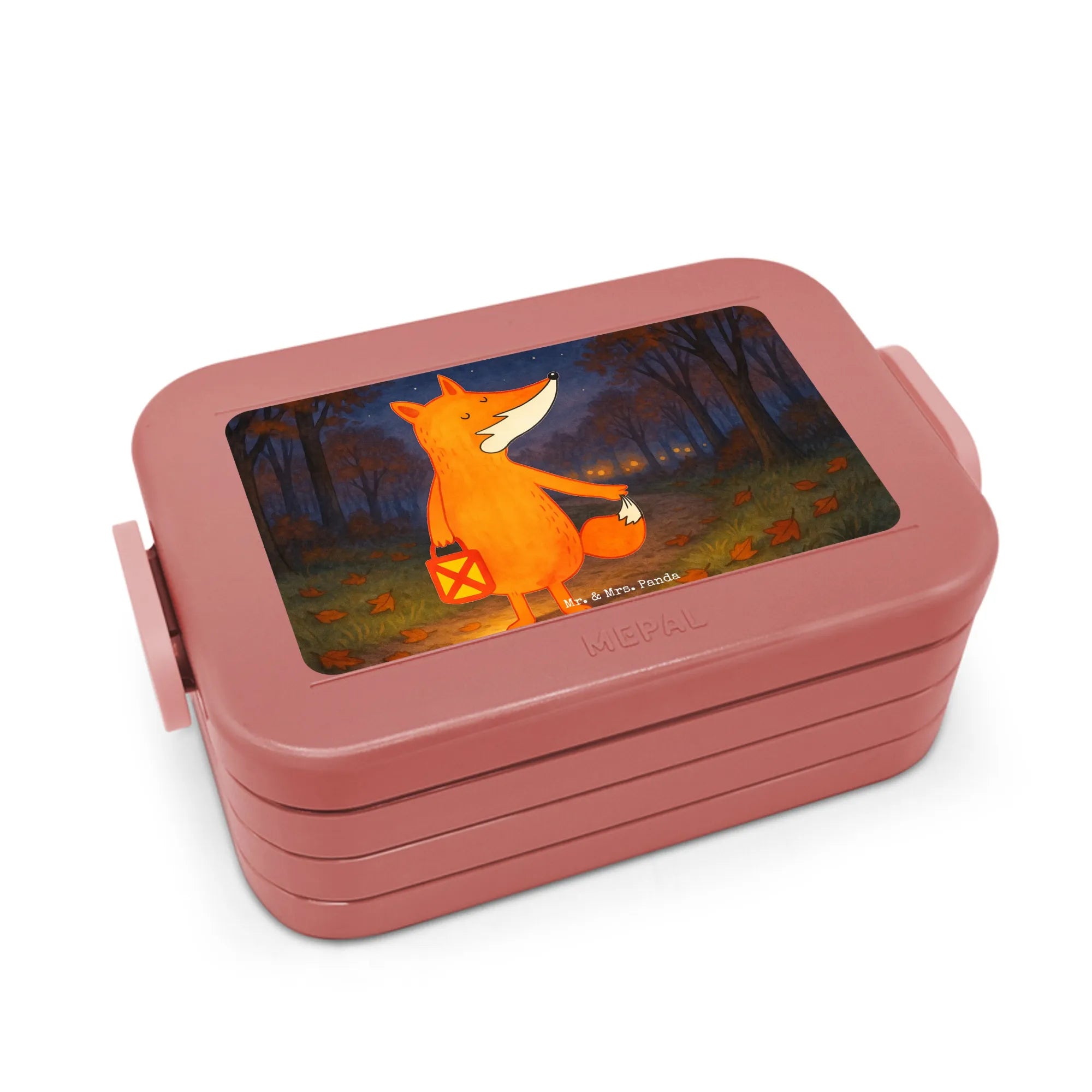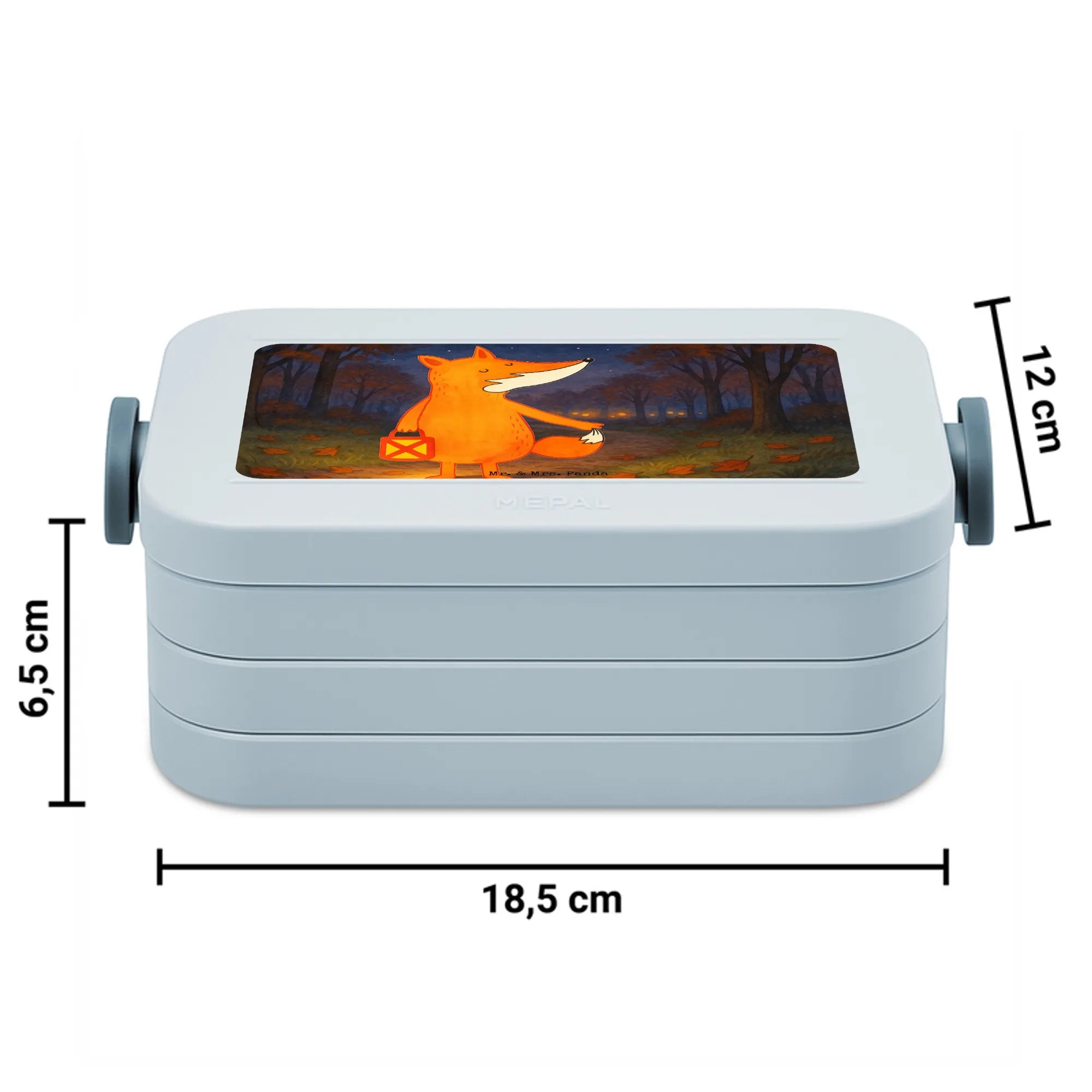 MEPAL Bentobox Fuchs Laterne Design - mit Spruch - Blau Pastell