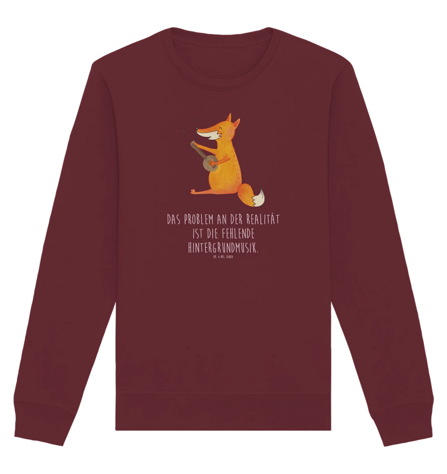 Organic Pullover Fox guitar - Size XS - with a saying - Burgundy