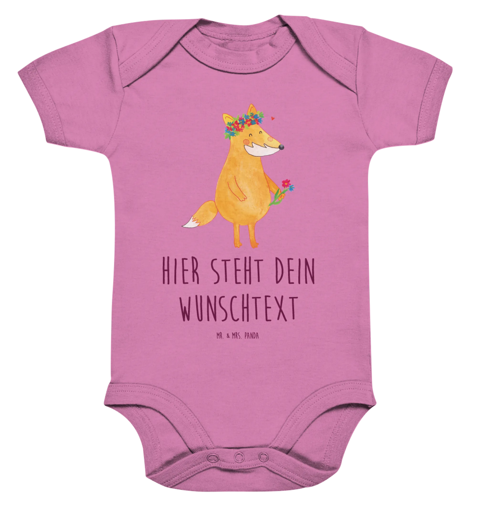 Bist du auf der Suche nach dem perfekten Geschenk für die frisch gebackenen Eltern oder einen besonderen Anlass? Dann ist der personalisierte Baby Body mit dem traumhaften Motiv "Fuchs Blumenliebe" aus der Fuchs Kollektion von Mr. & Mrs. Panda genau das Richtige!