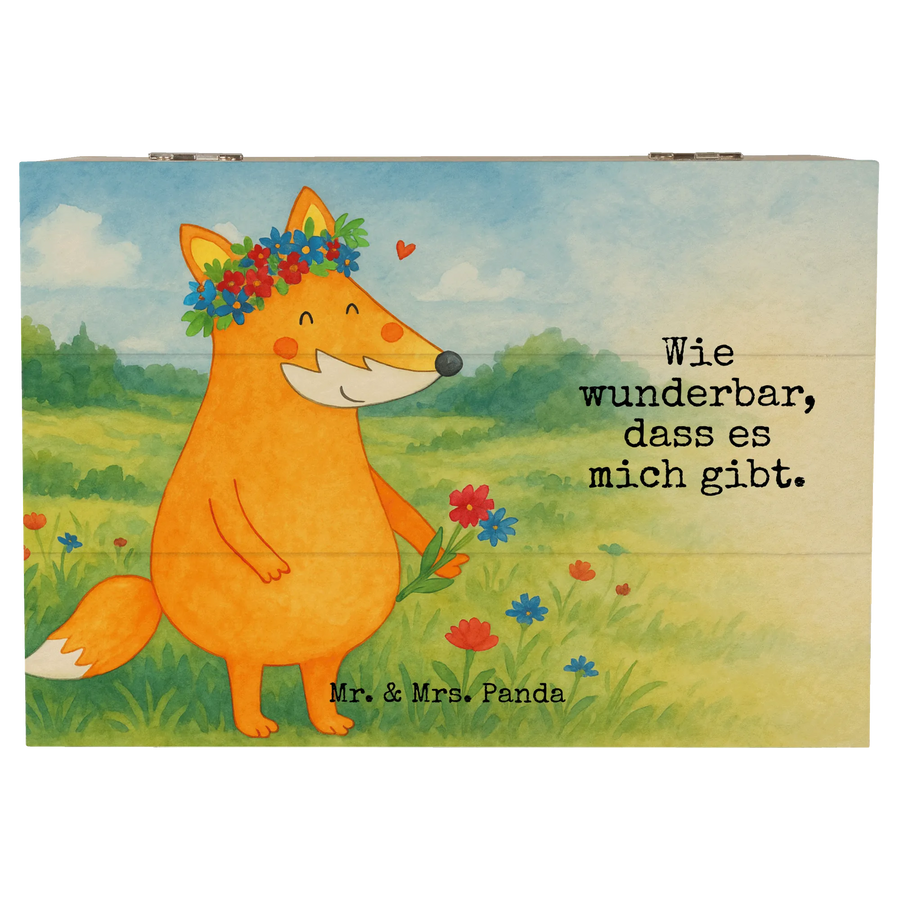 Die zauberhafte Holzkiste mit dem liebevollen Fuchs-Motiv ist mehr als nur eine einfache Holzbox – sie ist eine Erinnerungskiste voller Herz. Der niedliche Fuchs trägt Blumen im Haar und in der Hand und wird ergänzt durch den zarten Spruch „Wie wunderbar, dass es mich gibt.“ Das macht die Box zu einem liebevollen Geschenk für Dich selbst oder für Menschen, die Dir am Herzen liegen.