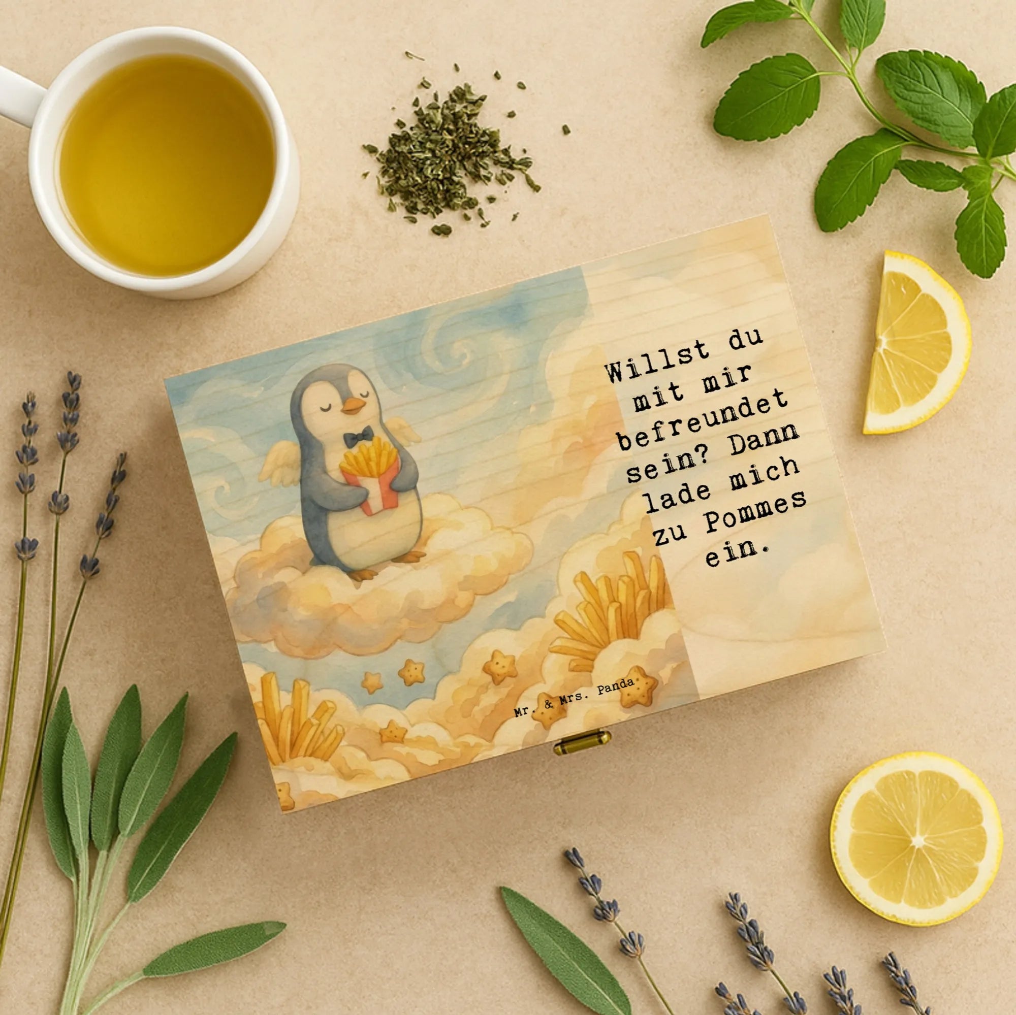 Pinguin Engel Pommes Design - with saying