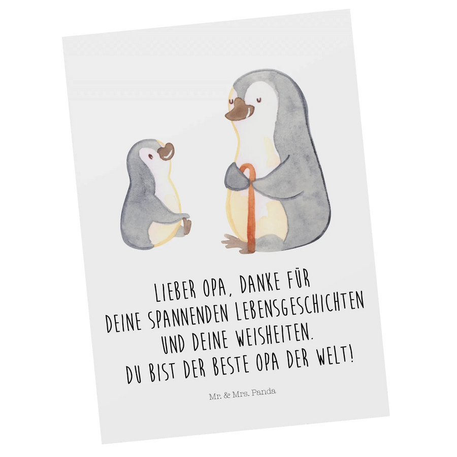 Postcard Penguin grandpa and grandkid - with a saying - White