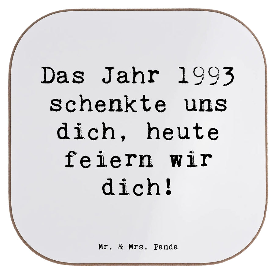 Square coaster Saying Das Jahr 1993 schenkte uns dich, heute feiern wir dich! - White