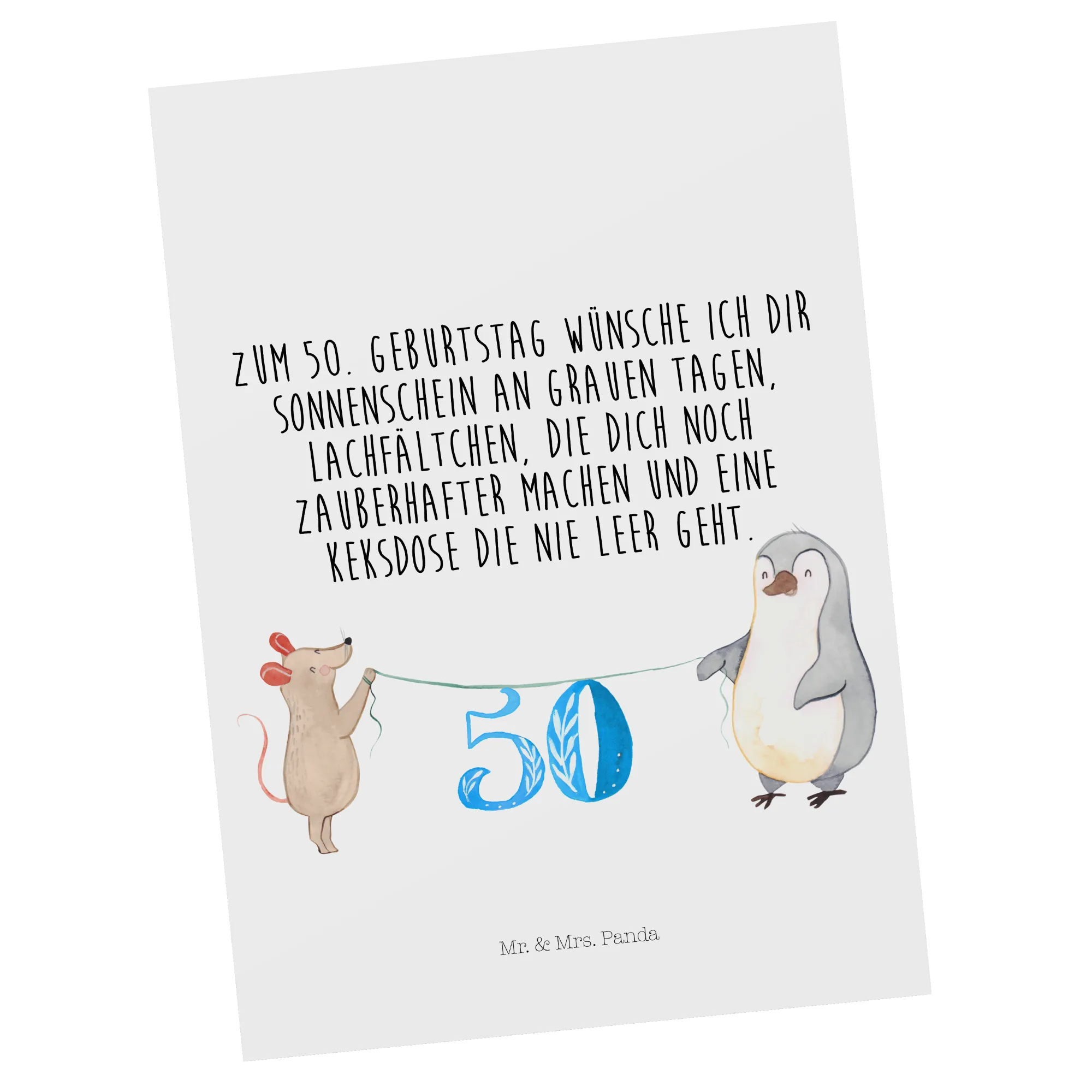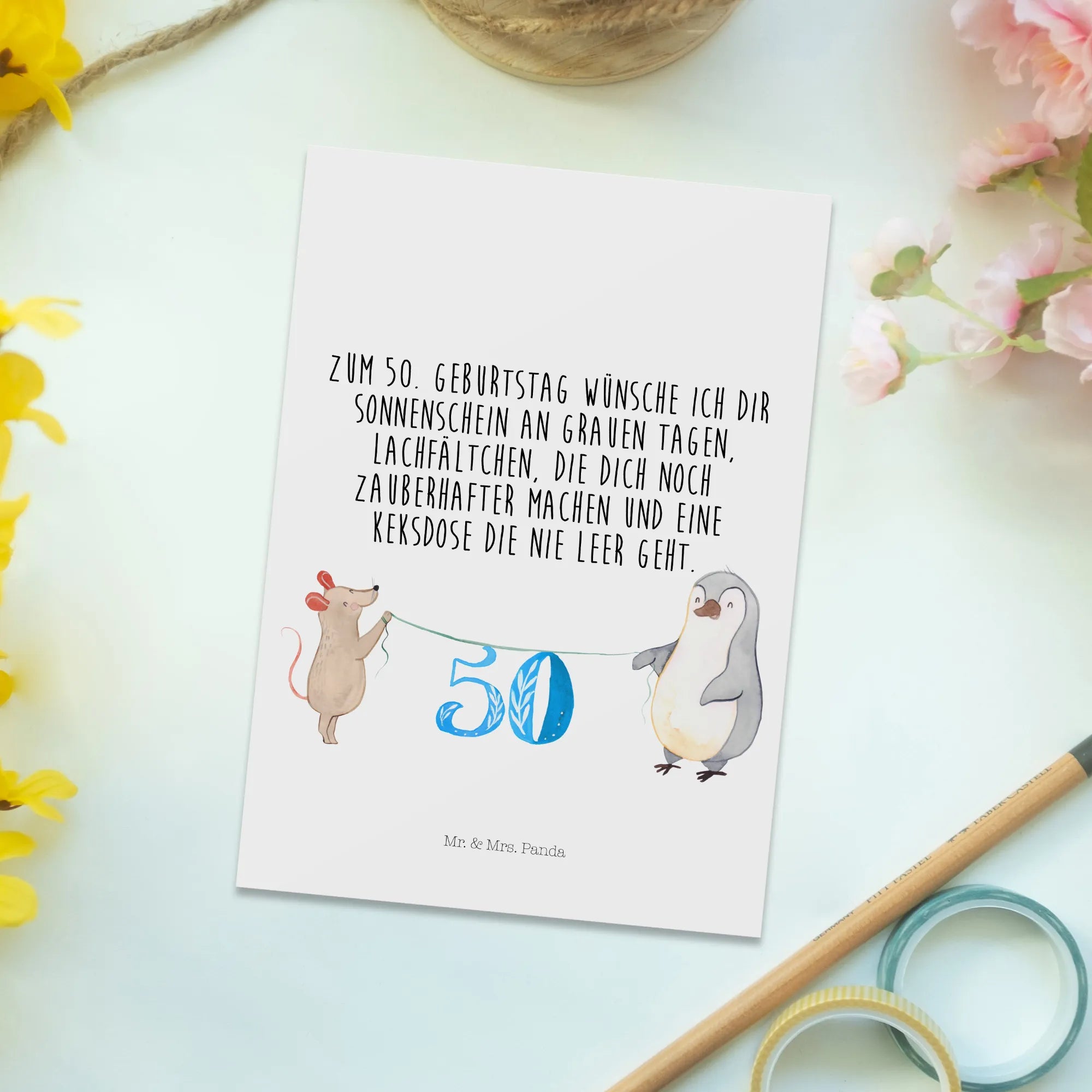 Adorable 50th Birthday Motif - Celebrating with Mouse & Penguin
