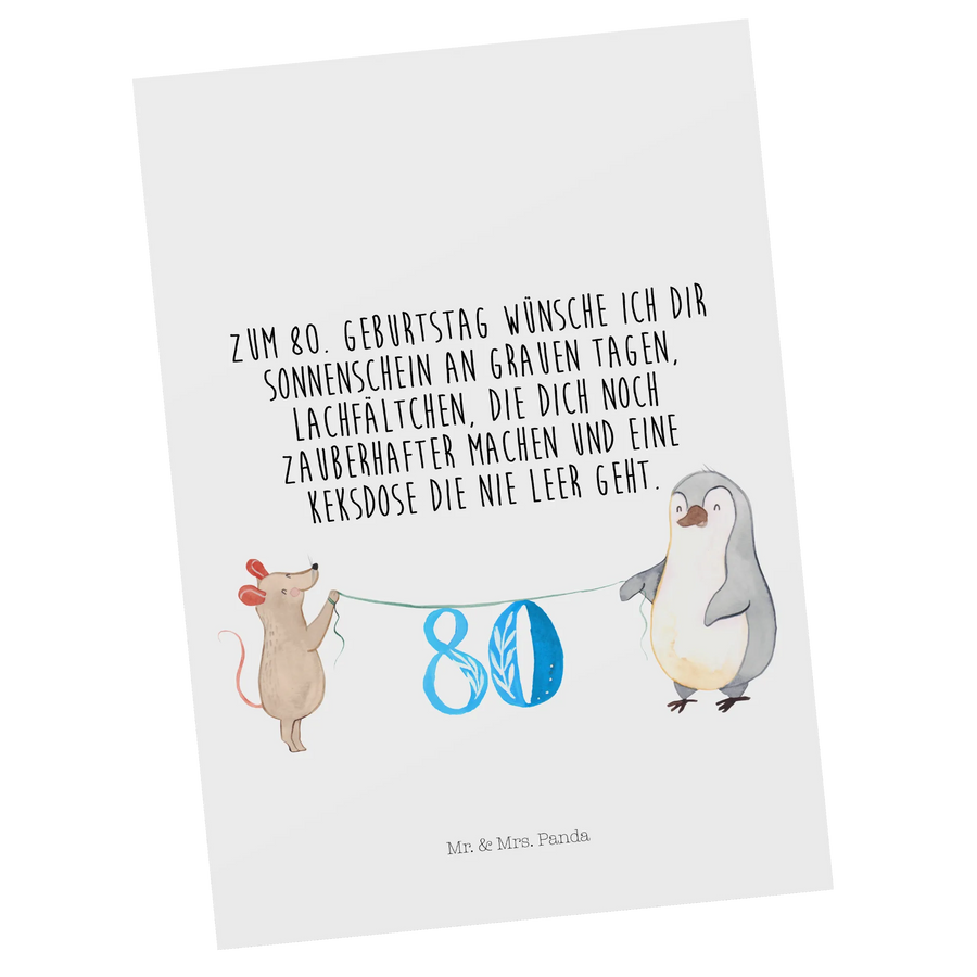 Postcard 80th birthday mouse penguin – Mr. & Mrs. Panda