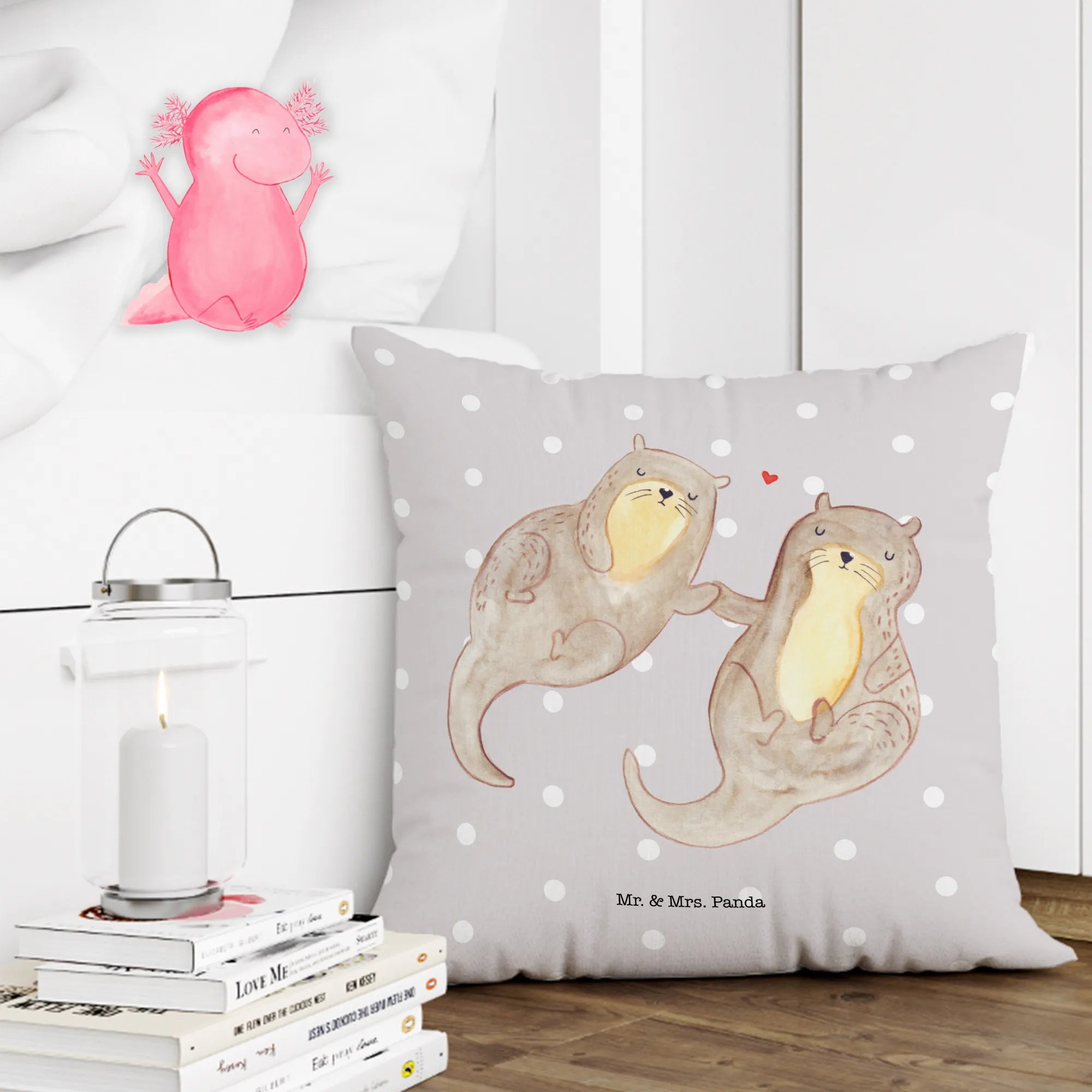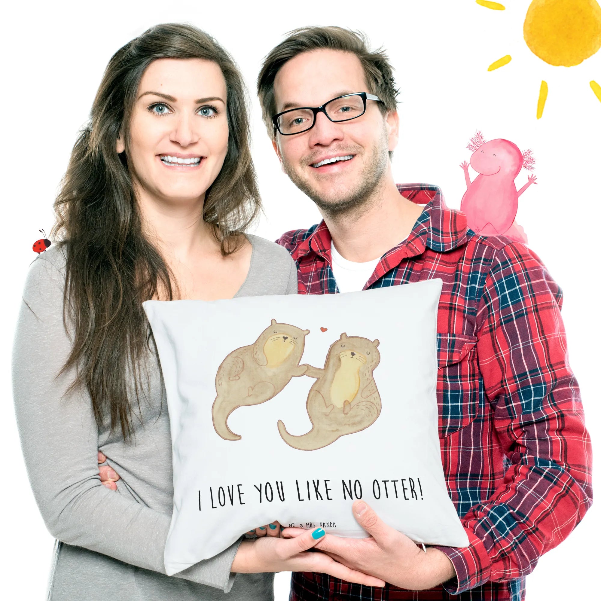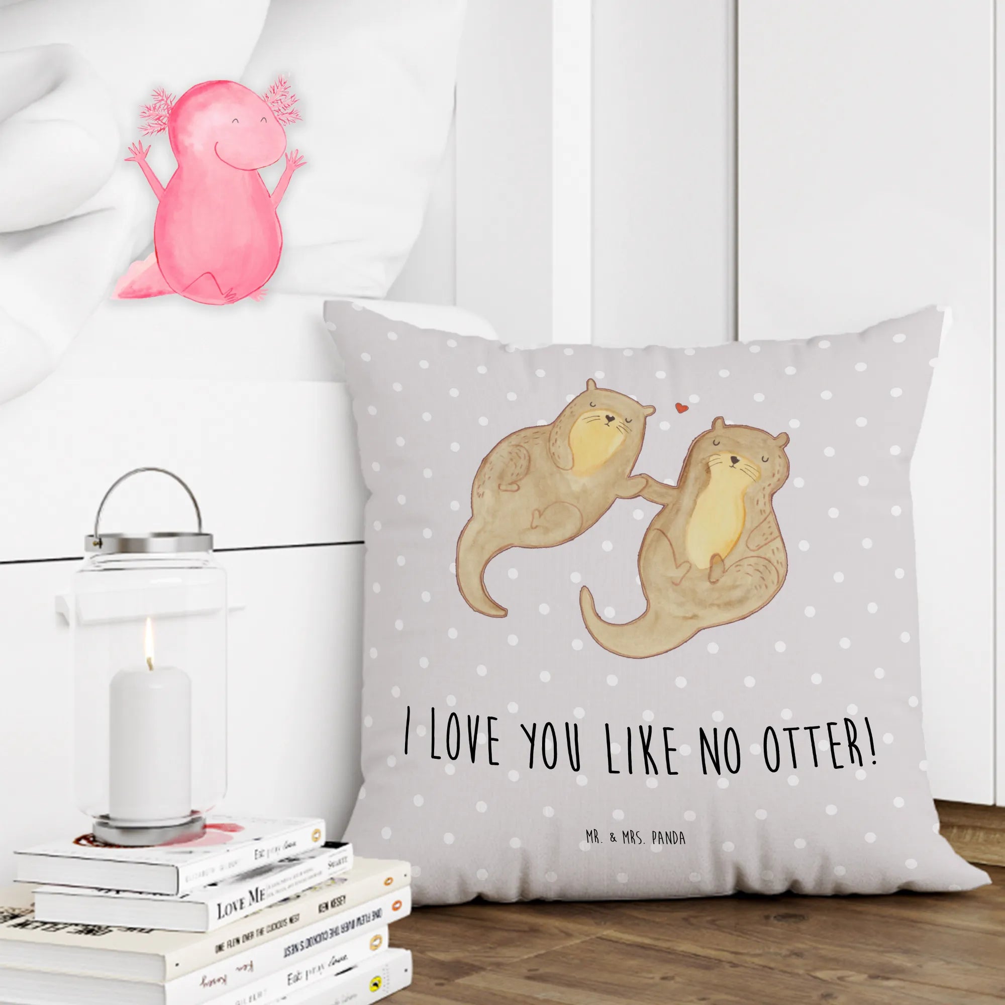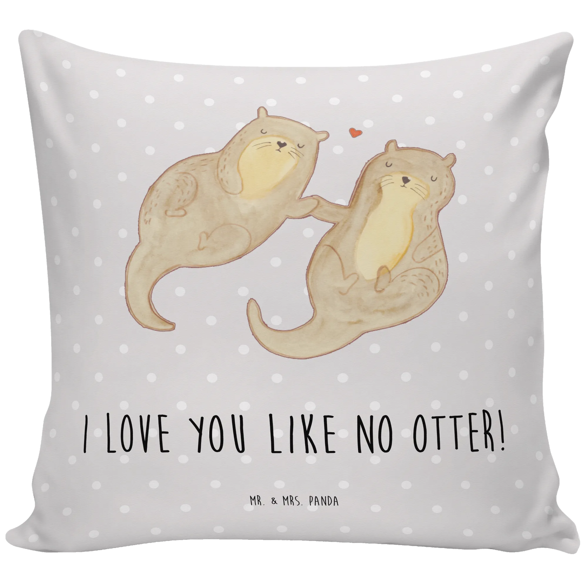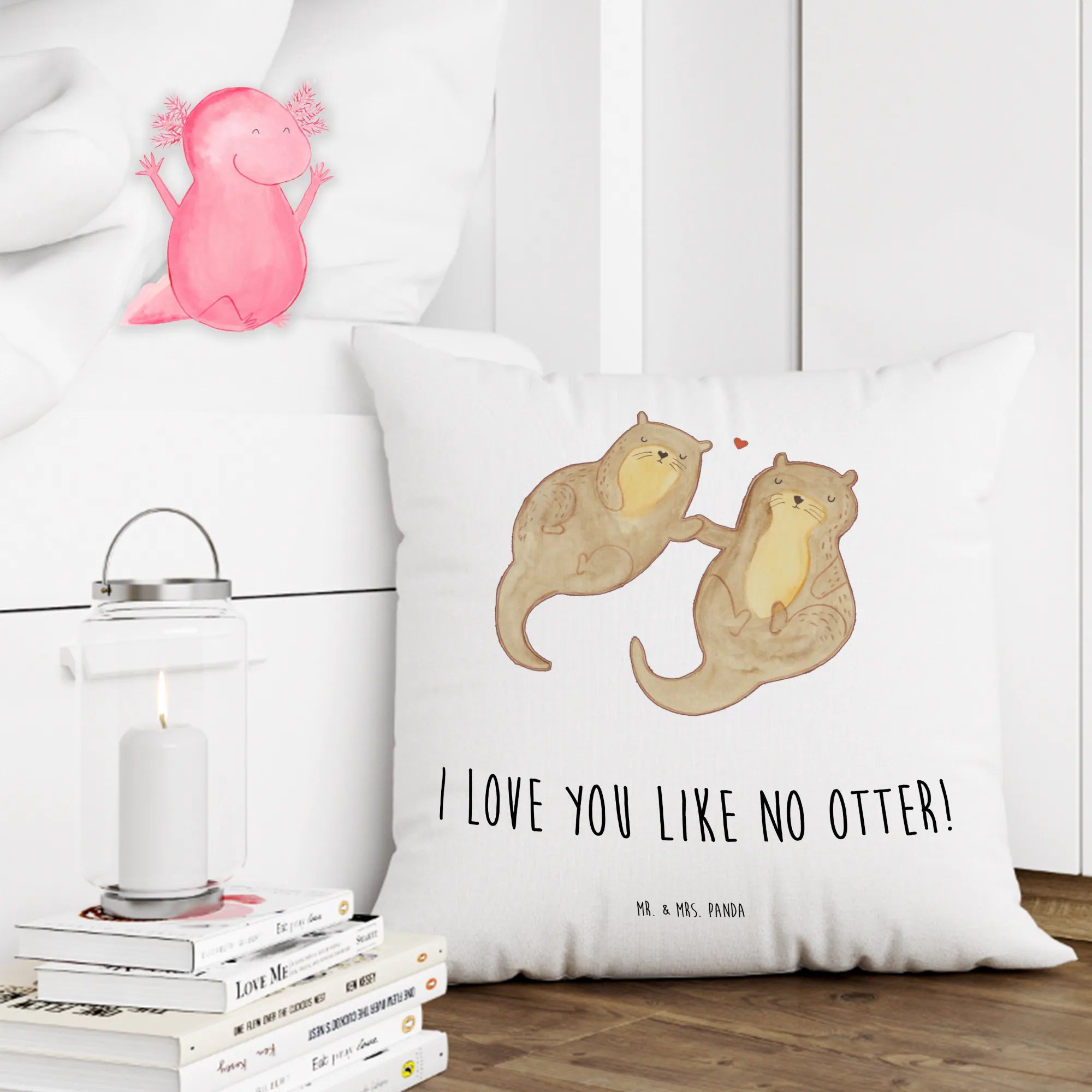 Introducing the delightful Otters Holding Hands Cushion from the charming Otter Collection by Mr. & Mrs. Panda! If you're searching for the perfect gift to express love and affection, look no further. This beautifully crafted cushion showcases two adorable otters floating side by side, holding hands as they share a tender moment. Every detail of this enchanting design has been lovingly hand-drawn by Mrs. Panda, capturing the essence of these playful, aquatic mammals.