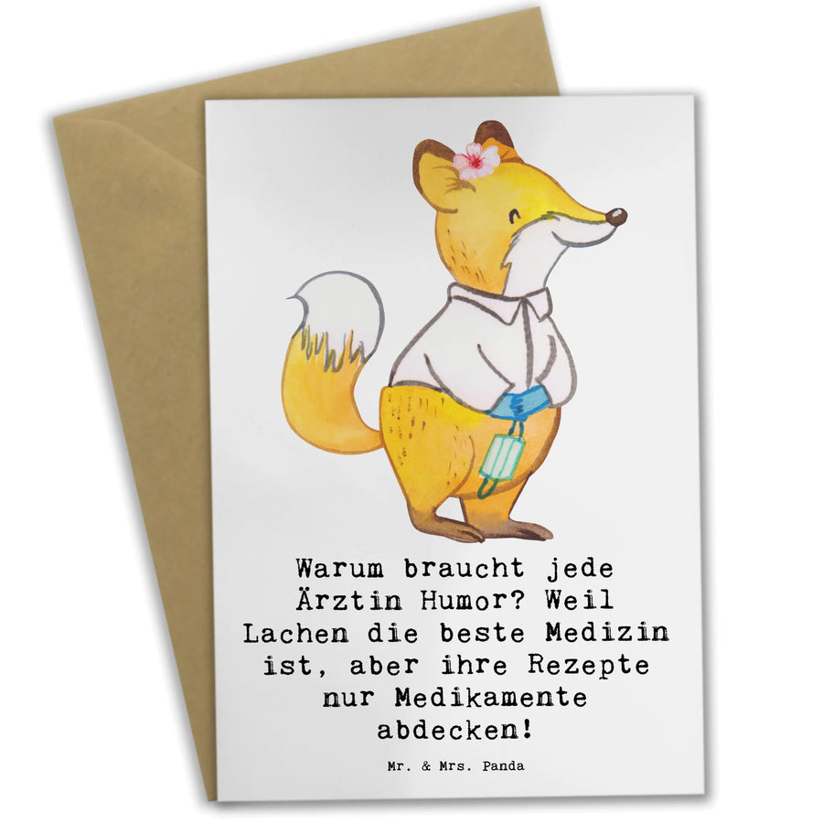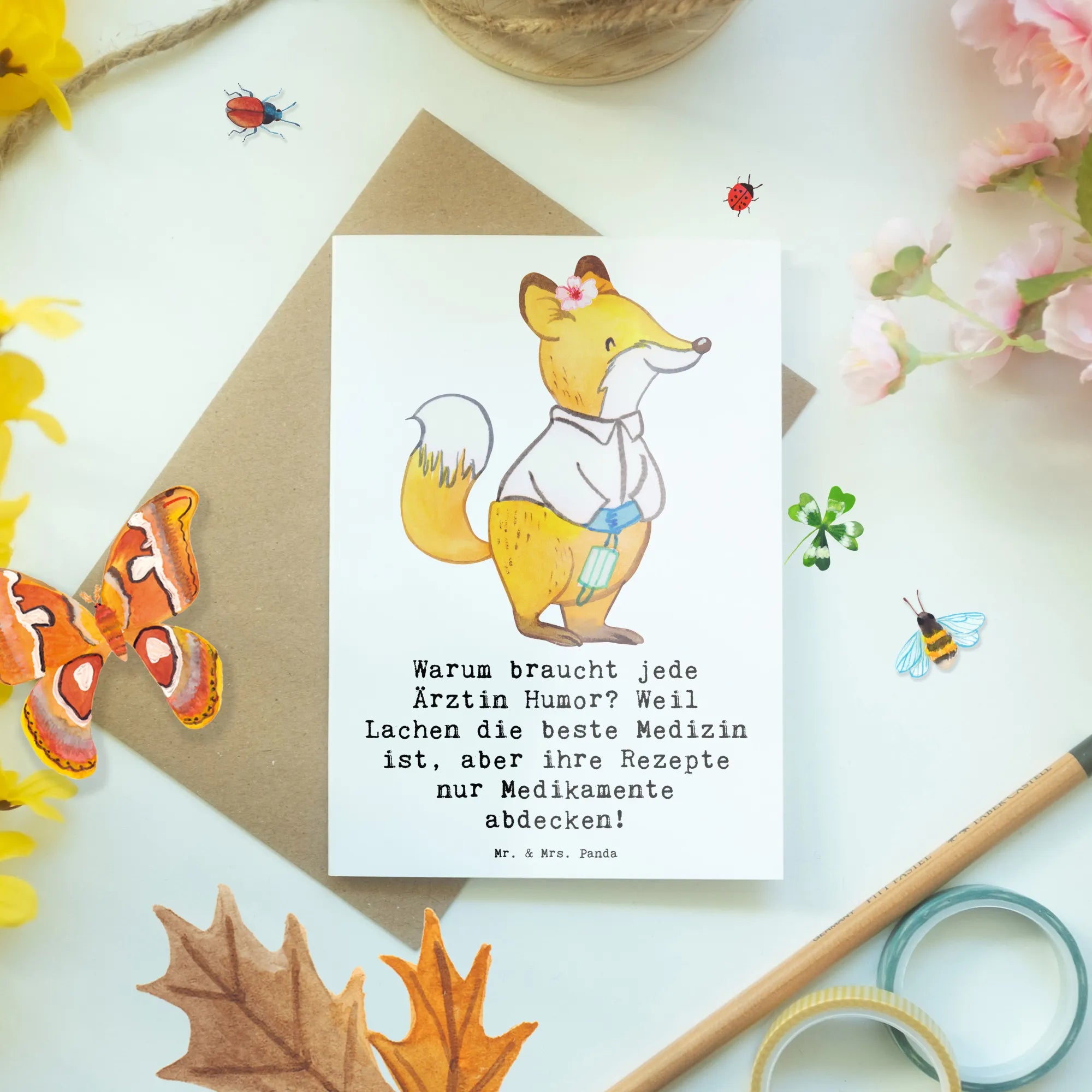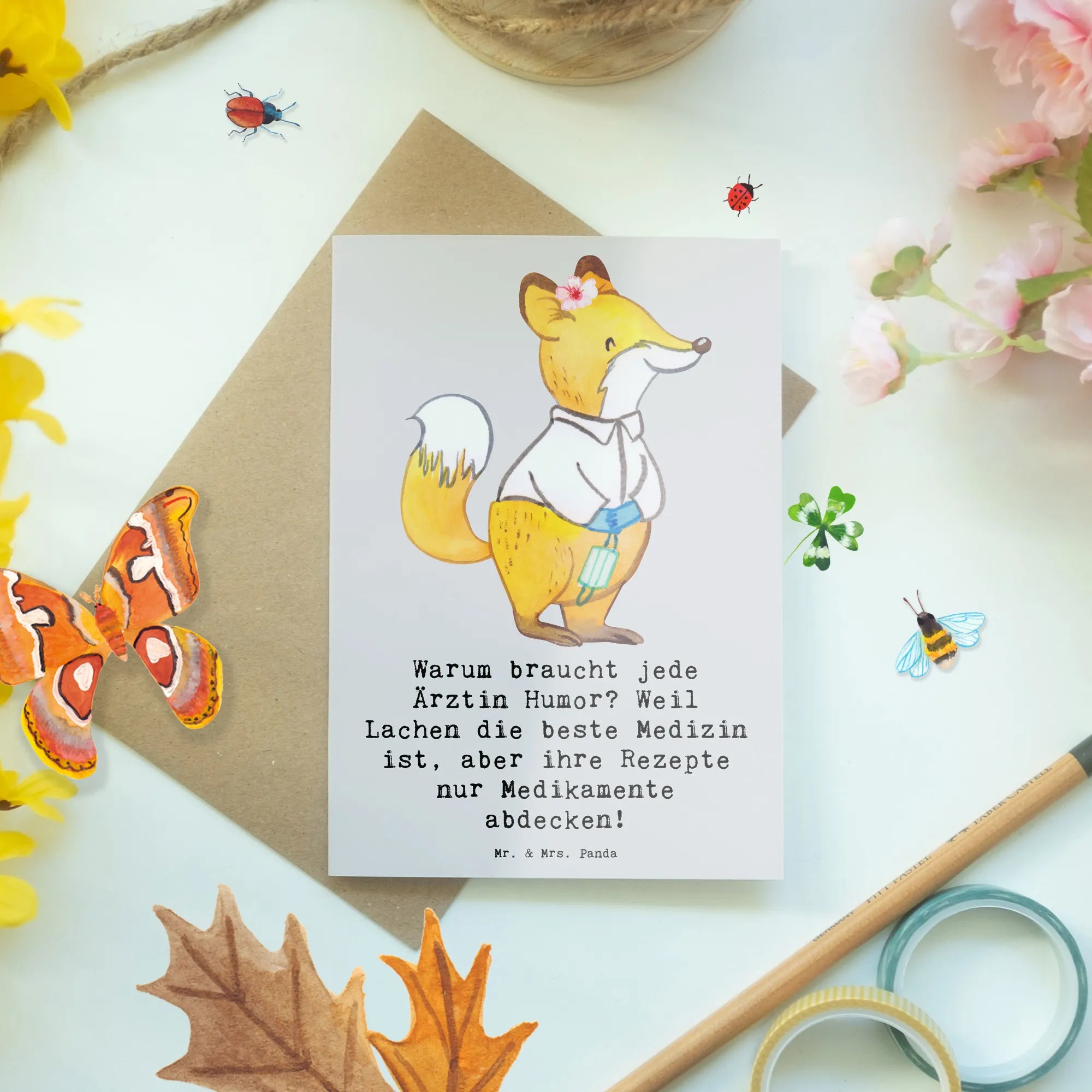 Greetings card Warum braucht jede Ärztin Humor? Weil Lachen die beste Medizin ist, aber ihre Rezepte nur Medikamente abdecken! - White