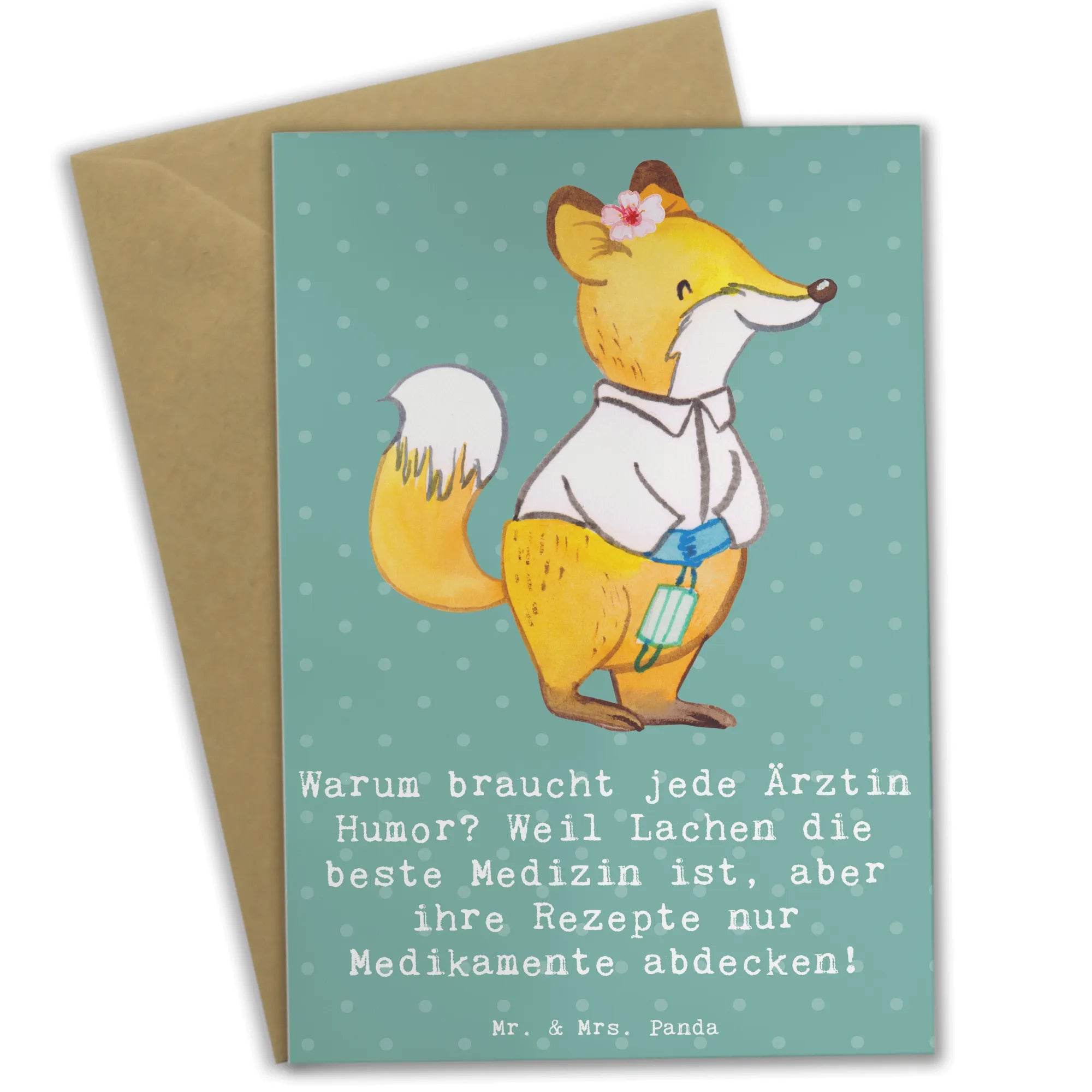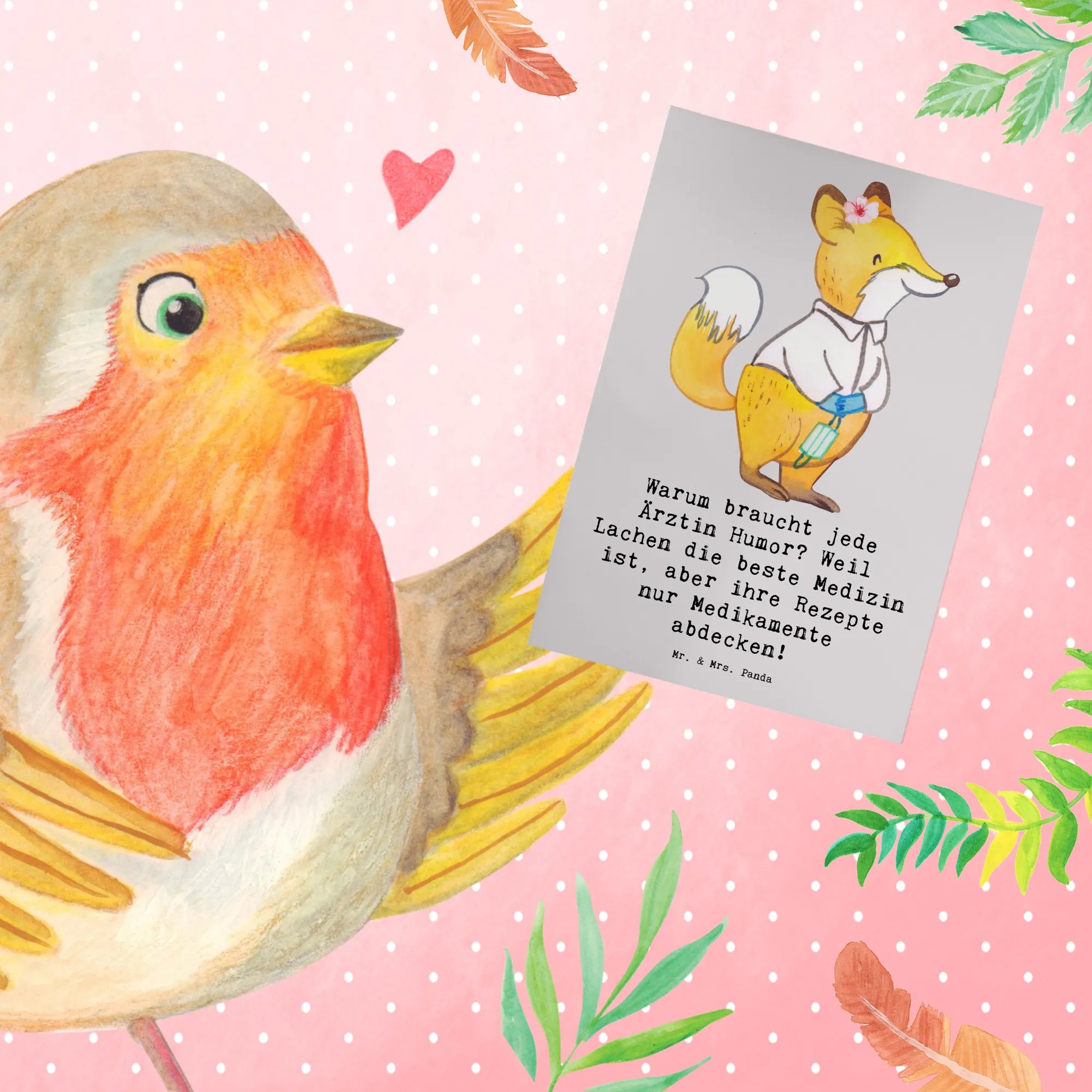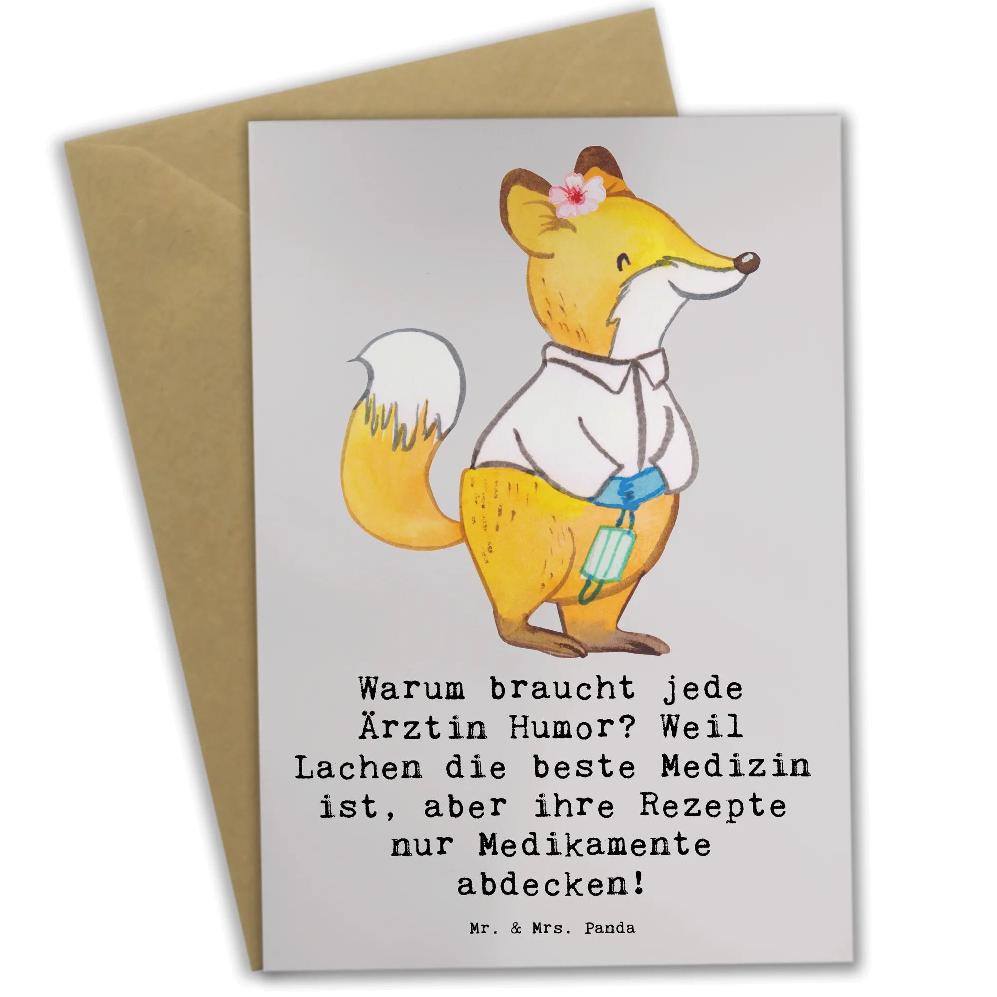 Greetings card Warum braucht jede Ärztin Humor? Weil Lachen die beste Medizin ist, aber ihre Rezepte nur Medikamente abdecken! - White