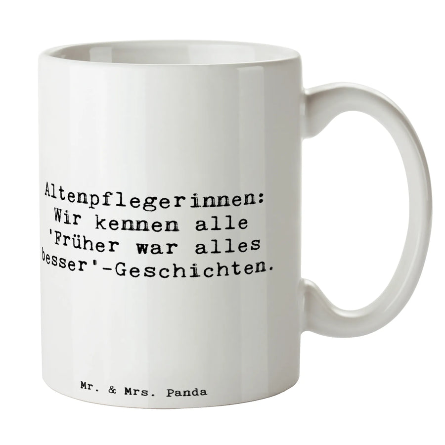 Mug Saying Altenpflegerinnen: Wir kennen alle 'Früher war alles besser'-Geschichten. - White