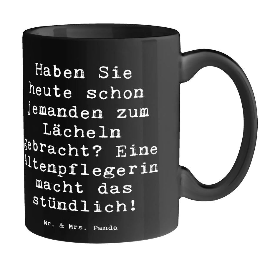 Mug Saying Haben Sie heute schon jemanden zum Lächeln gebracht? Eine Altenpflegerin macht das stündlich! - Black