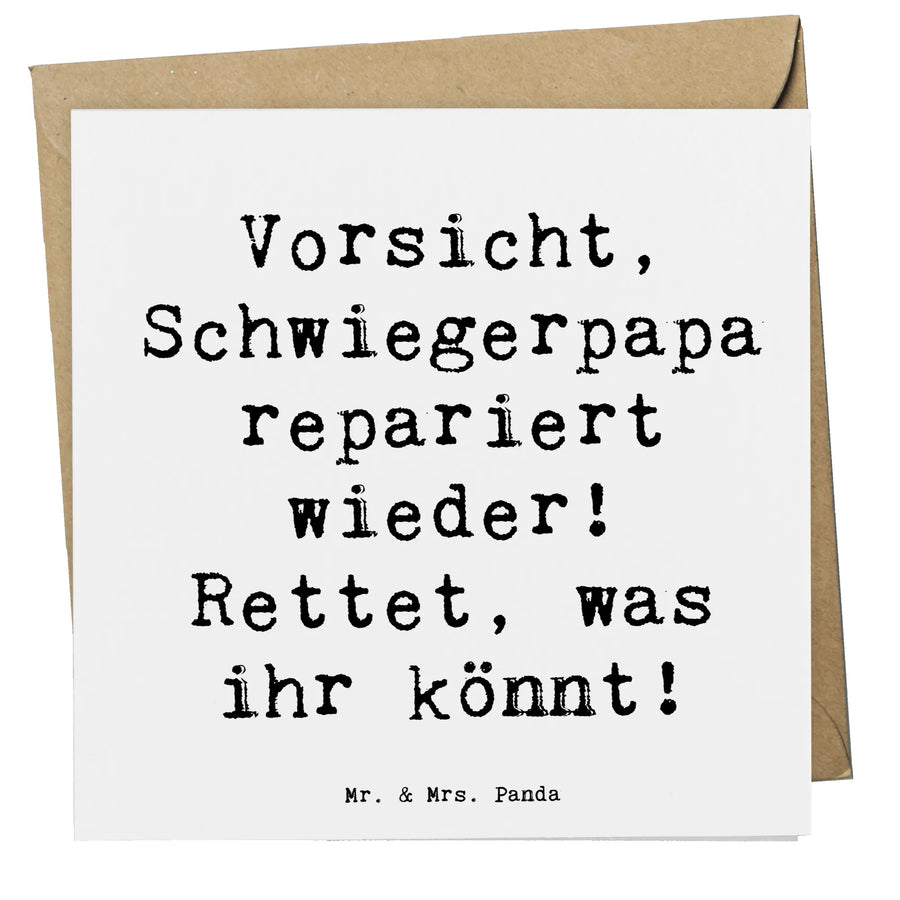 Deluxe Card Saying Vorsicht, Schwiegerpapa repariert wieder! Rettet, was ihr könnt! - White