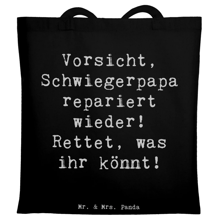Tote bag Saying Vorsicht, Schwiegerpapa repariert wieder! Rettet, was ihr könnt! - Black