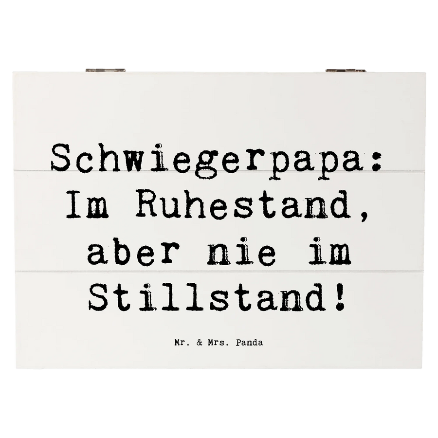 Wooden chest Saying Schwiegerpapa: Im Ruhestand, aber nie im Stillstand! - 25 x 18 cm - White