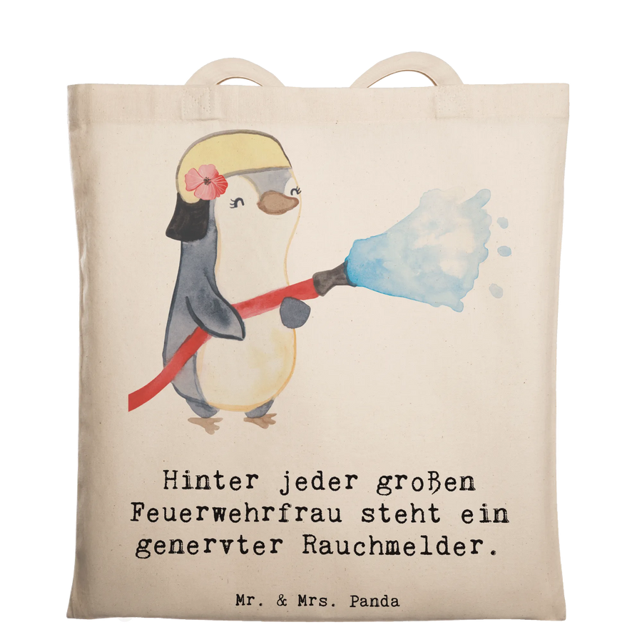 Eine wunderschöne Tragetasche von Mr. & Mrs. Panda, perfekt für Feuerwehrfrauen, Fans von Berufsmotiven und alle, die ein praktisches, liebevolles Geschenk suchen. Das Motiv wurde von Mrs. Panda handgezeichnet und zeigt eine stolze Feuerwehrfrau mit dem frechen Spruch: „Hinter jeder großen Feuerwehrfrau steht ein genervter Rauchmelder.” Ein Augenzwinkern, das Anerkennung und Humor verbindet.