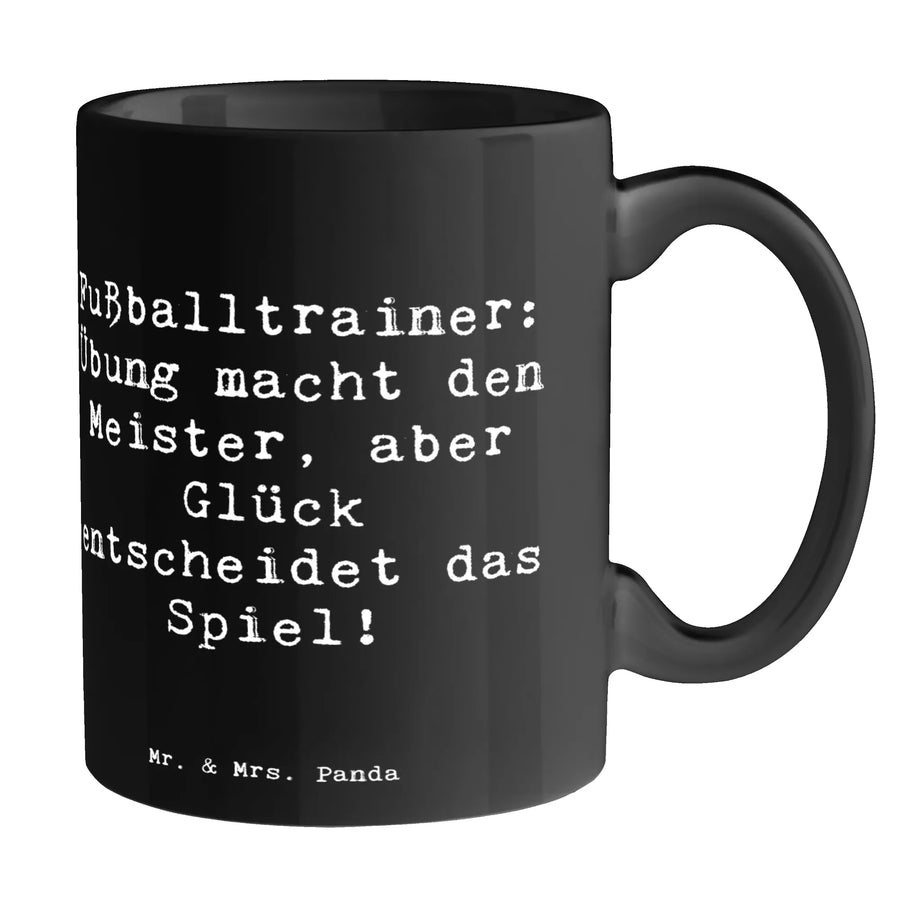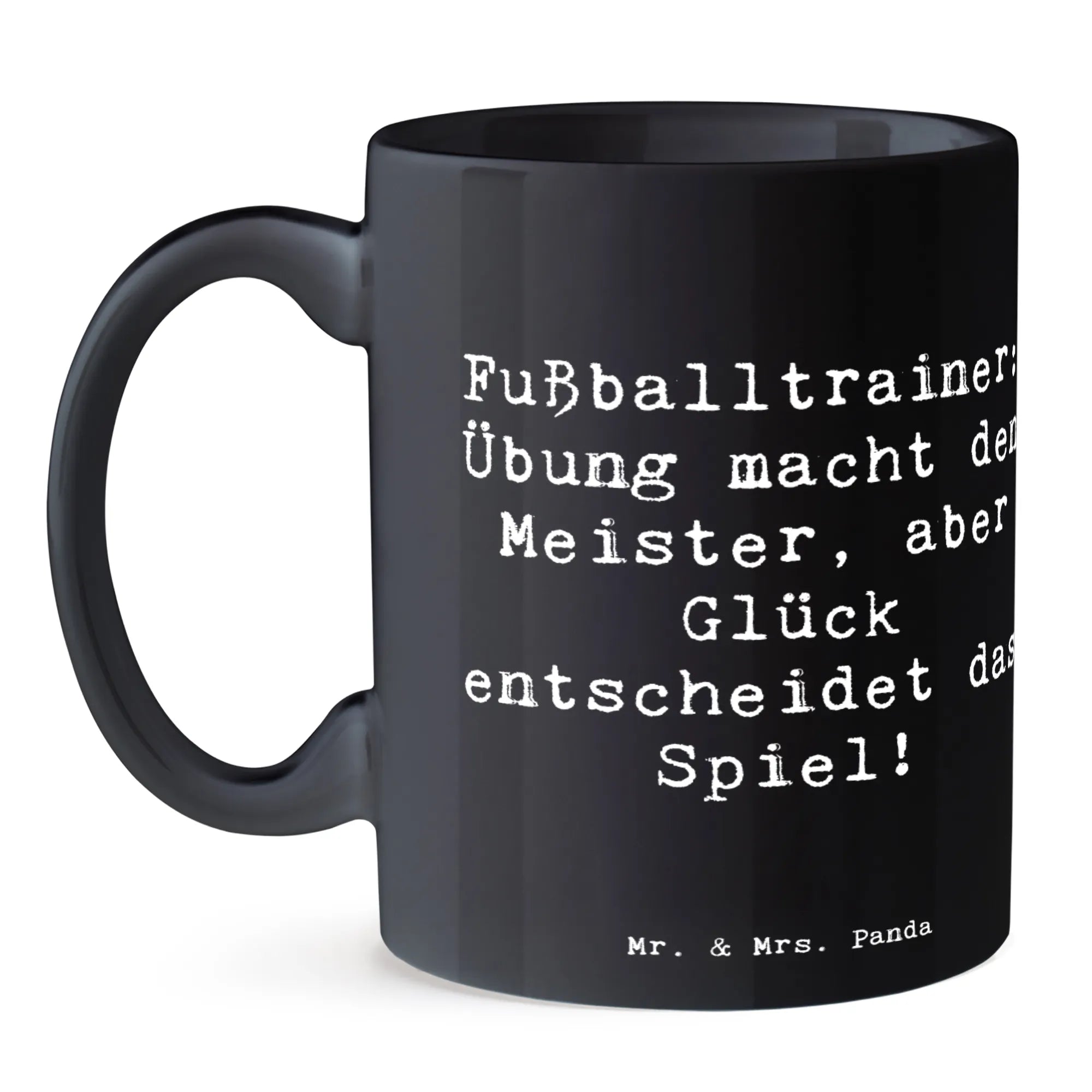 Mug Saying Fußballtrainer: Übung macht den Meister, aber Glück entscheidet das Spiel! - Black