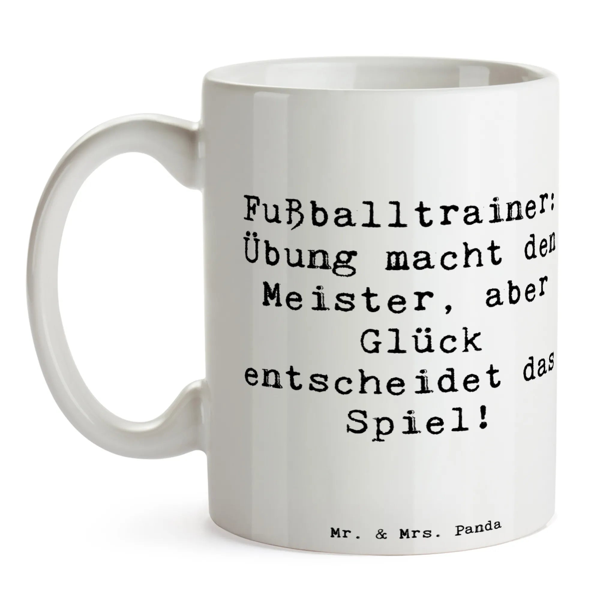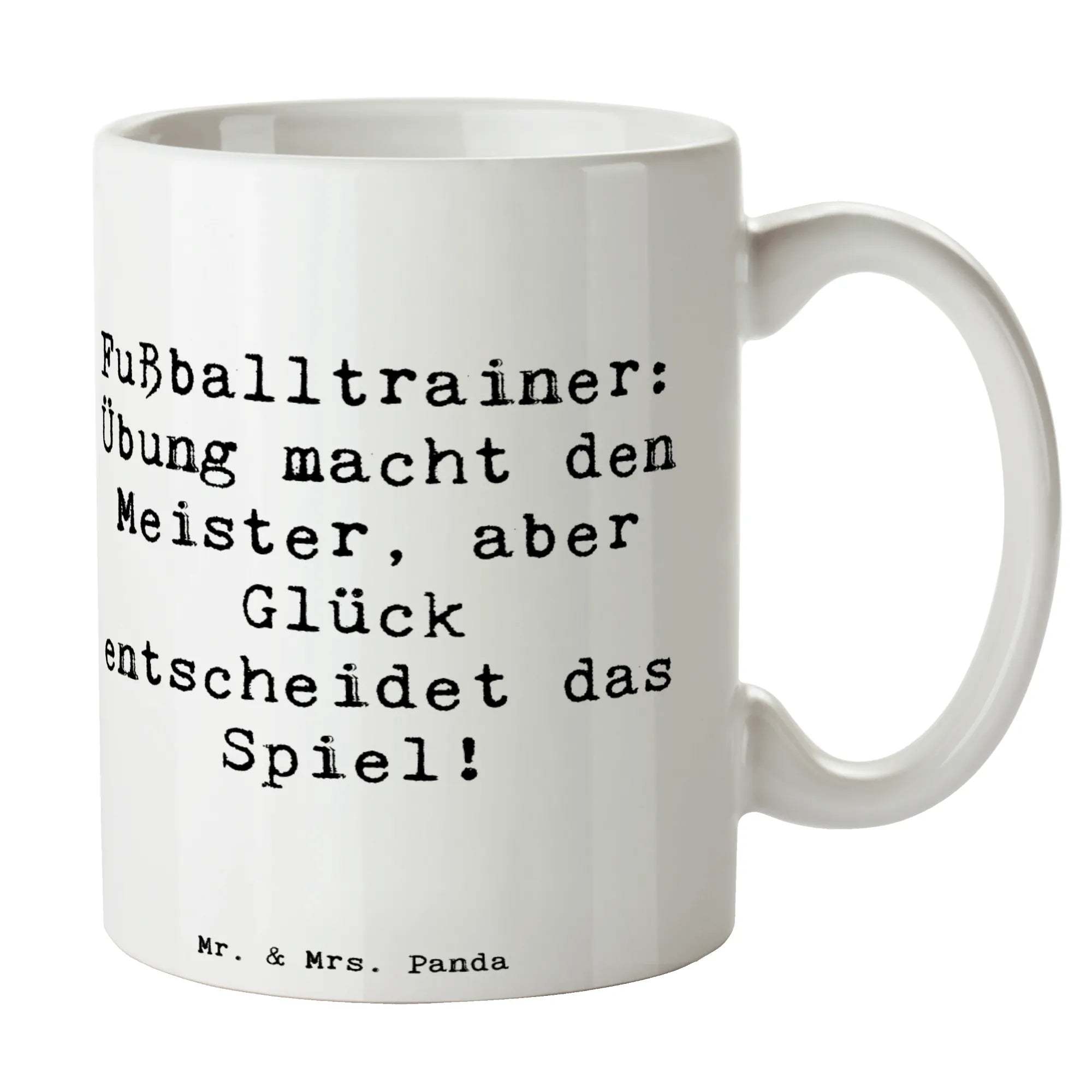 Du suchst das perfekte Geschenk für einen Fußballtrainer? Unsere Mr. & Mrs. Panda Tasse „Fußballtrainer“ aus der Berufe-Kollektion kombiniert Humor, Herz und Stil – mit dem frechen Spruch: Fußballtrainer: Übung macht den Meister, aber Glück entscheidet das Spiel!