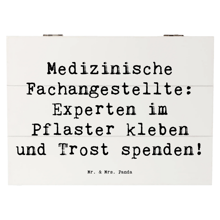 Wooden chest Saying Medizinische Fachangestellte: Experten im Pflaster kleben und Trost spenden! - 25 x 18 cm - White