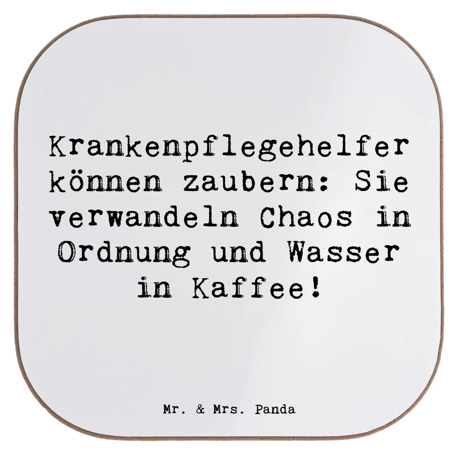 Square coaster Saying Krankenpflegehelfer können zaubern: Sie verwandeln Chaos in Ordnung und Wasser in Kaffee! - White