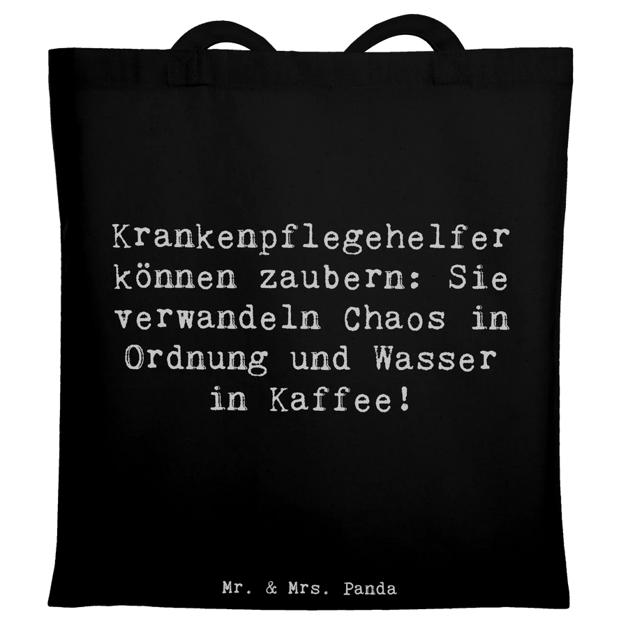 Tote bag Saying Krankenpflegehelfer können zaubern: Sie verwandeln Chaos in Ordnung und Wasser in Kaffee! - Black