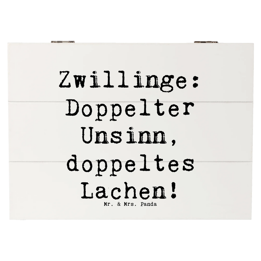 Wooden chest Saying Zwillinge: Doppelter Unsinn, doppeltes Lachen! - 25 x 18 cm - White