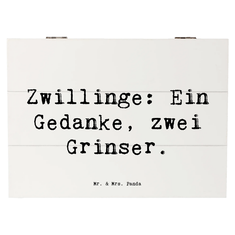 Wooden chest Saying Zwillinge: Ein Gedanke, zwei Grinser. - 25 x 18 cm - White